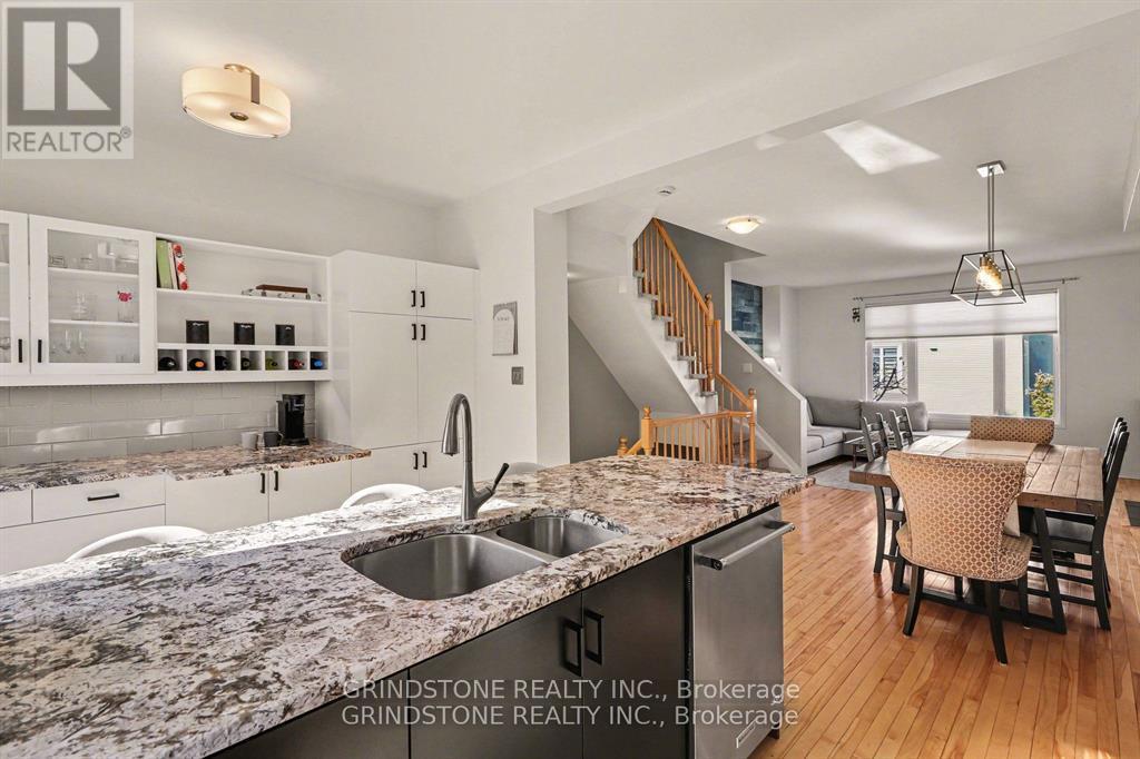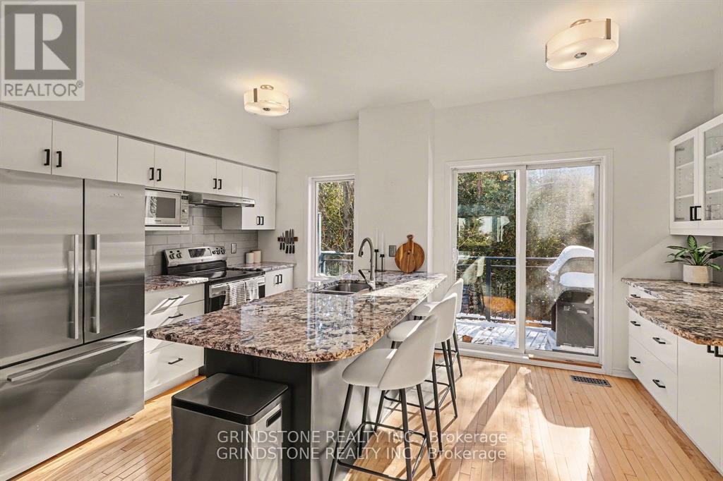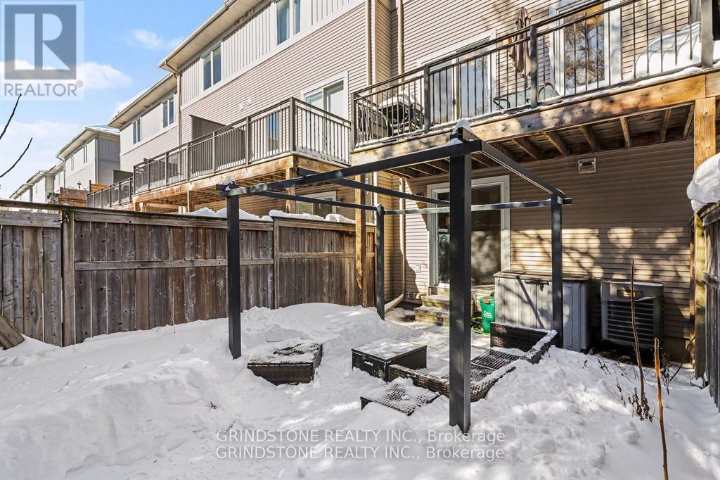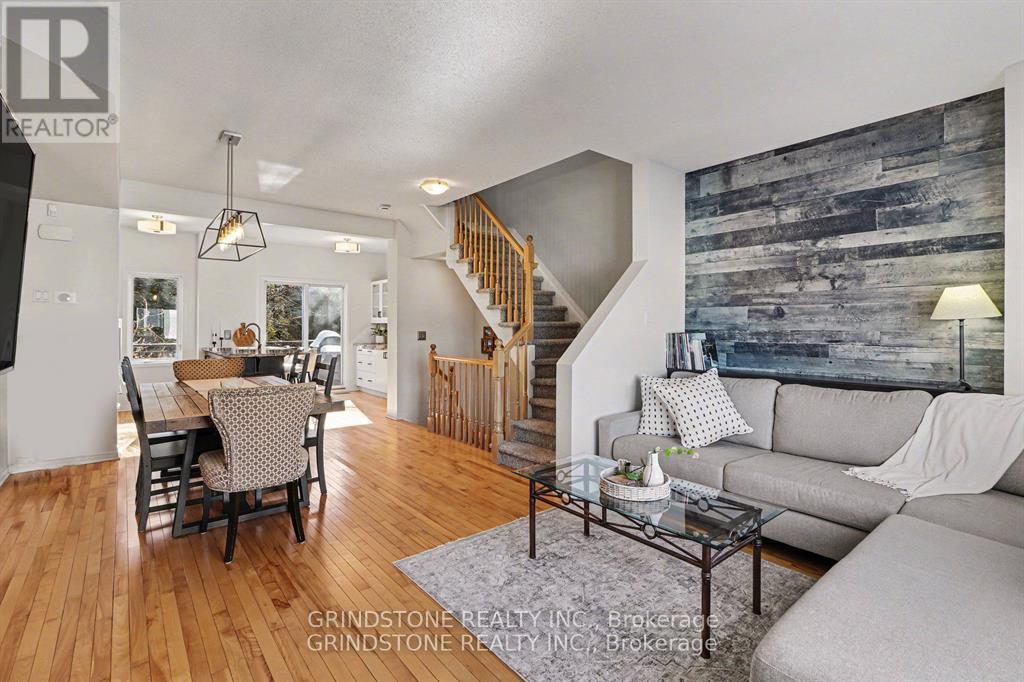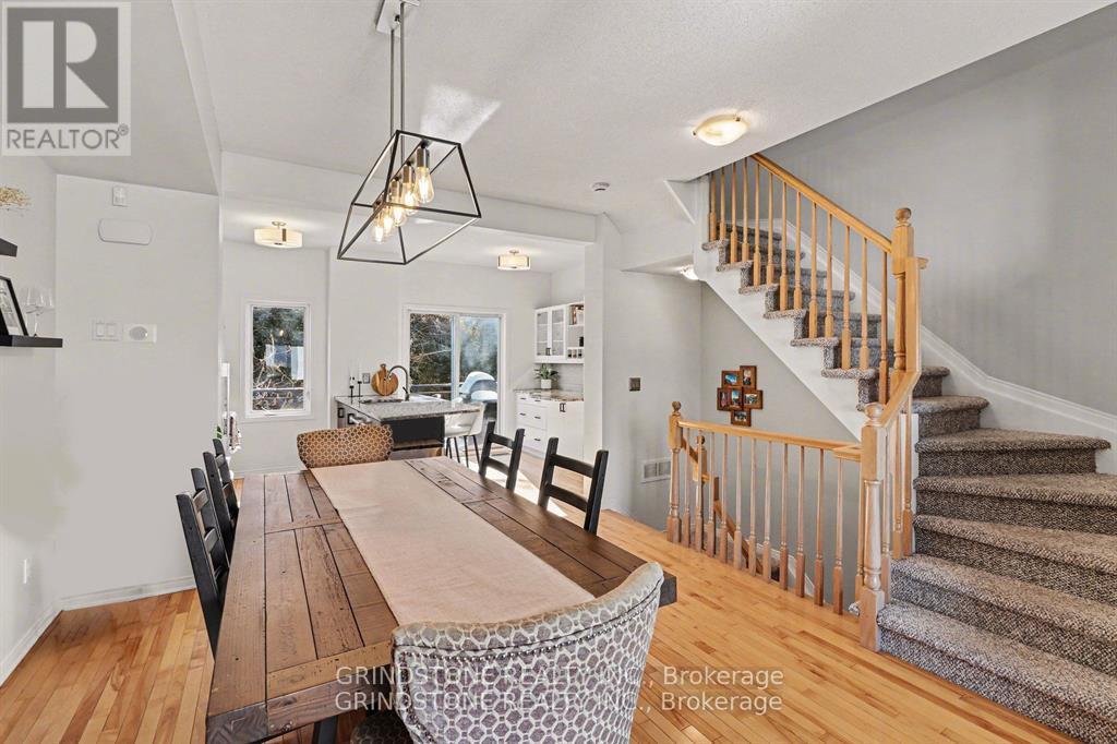 Rare opportunity in the heart of Bells Corners backing directly onto NCC forest with no rear neighbours - a premium setting offering exceptional privacy and a peaceful natural backdrop. This beautifully updated 3-bedroom freehold townhome is completely turnkey and move-in ready. The renovated kitchen (2015) features granite countertops, stainless steel appliances, induction stove, pull-out pantry, and direct access to a private balcony overlooking the professionally landscaped backyard and surrounding greenspace. Hardwood flooring runs throughout the main living area, complemented by a well-proportioned dining and inviting living room with gas fireplace. Large windows at both the front and rear of the home flood the interior with natural light. The upper level includes three bedrooms, highlighted by a generous primary bedroom with a full wall of closet space and serene forest views. The second bedroom is also generously sized, while the third bedroom is ideal for a nursery, child's room, or home office. The main bathroom has been thoughtfully updated with heated floors, a new vanity, sink, lighting, and fresh finishes. The ground level features a functional den perfect for a home office, a convenient 2-piece powder room and interior access to both the garage and backyard. The landscaped backyard backs directly onto NCC forest, creating a rare private forest setting within the city - just steps away from direct access to nearby trails for year-round walking, hiking, and cross-country skiing. Ideally located close to shopping, transit, and quick access to Hwy 416 and Hwy 401. Roof replaced in 2019. Association fee of $150/month covers maintenance of the private road and common areas. 24 Hour Irrevocable on all offers. (42204128)