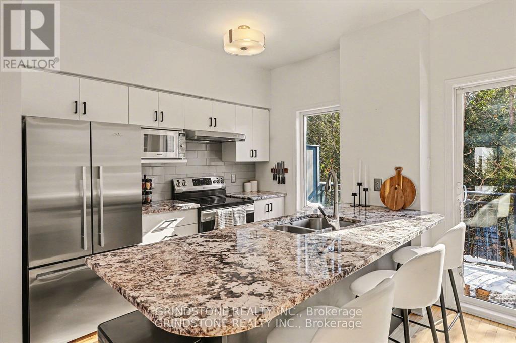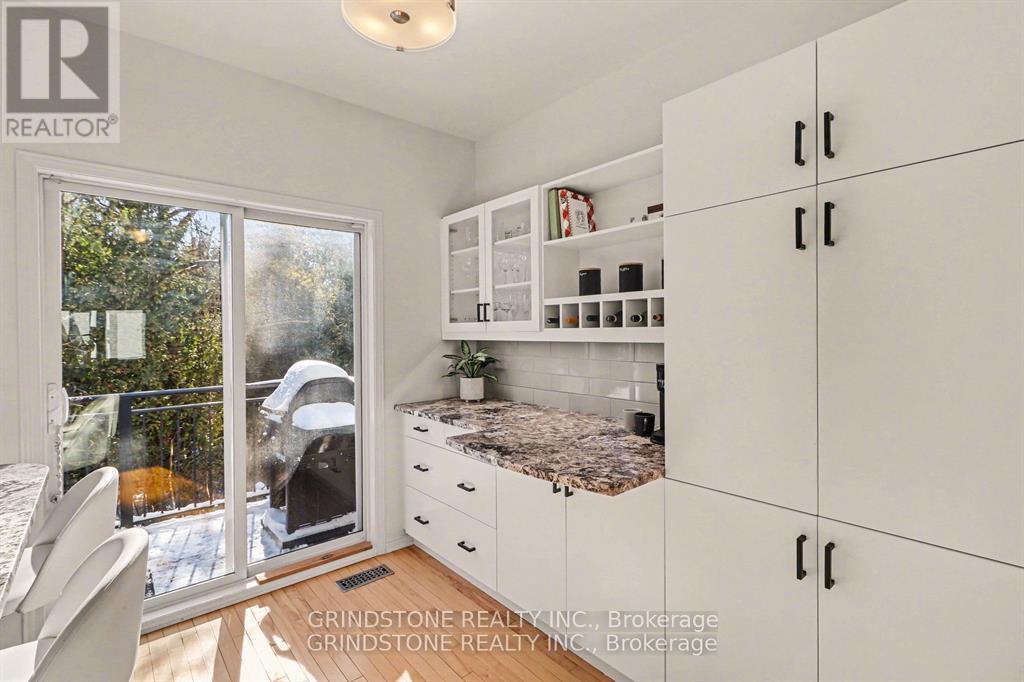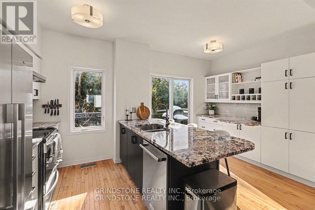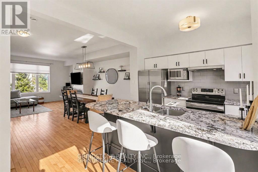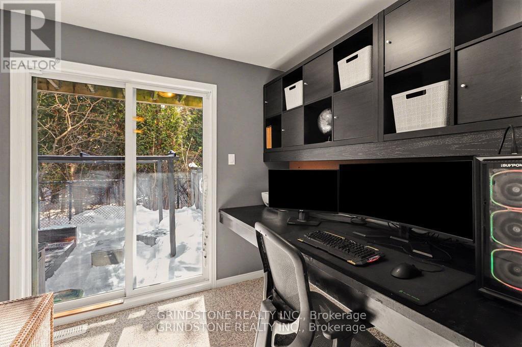 Rare opportunity in the heart of Bells Corners backing directly onto NCC forest with no rear neighbours - a premium setting offering exceptional privacy and a peaceful natural backdrop. This beautifully updated 3-bedroom freehold townhome is completely turnkey and move-in ready. The renovated kitchen (2015) features granite countertops, stainless steel appliances, induction stove, pull-out pantry, and direct access to a private balcony overlooking the professionally landscaped backyard and surrounding greenspace. Hardwood flooring runs throughout the main living area, complemented by a well-proportioned dining and inviting living room with gas fireplace. Large windows at both the front and rear of the home flood the interior with natural light. The upper level includes three bedrooms, highlighted by a generous primary bedroom with a full wall of closet space and serene forest views. The second bedroom is also generously sized, while the third bedroom is ideal for a nursery, child's room, or home office. The main bathroom has been thoughtfully updated with heated floors, a new vanity, sink, lighting, and fresh finishes. The ground level features a functional den perfect for a home office, a convenient 2-piece powder room and interior access to both the garage and backyard. The landscaped backyard backs directly onto NCC forest, creating a rare private forest setting within the city - just steps away from direct access to nearby trails for year-round walking, hiking, and cross-country skiing. Ideally located close to shopping, transit, and quick access to Hwy 416 and Hwy 401. Roof replaced in 2019. Association fee of $150/month covers maintenance of the private road and common areas. 24 Hour Irrevocable on all offers. (42204128)