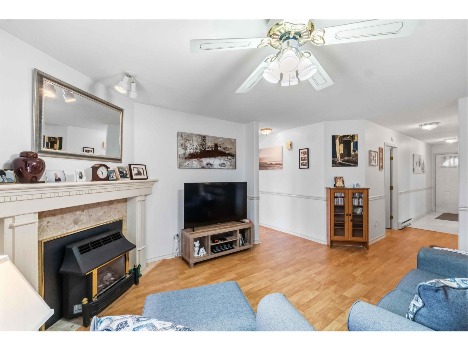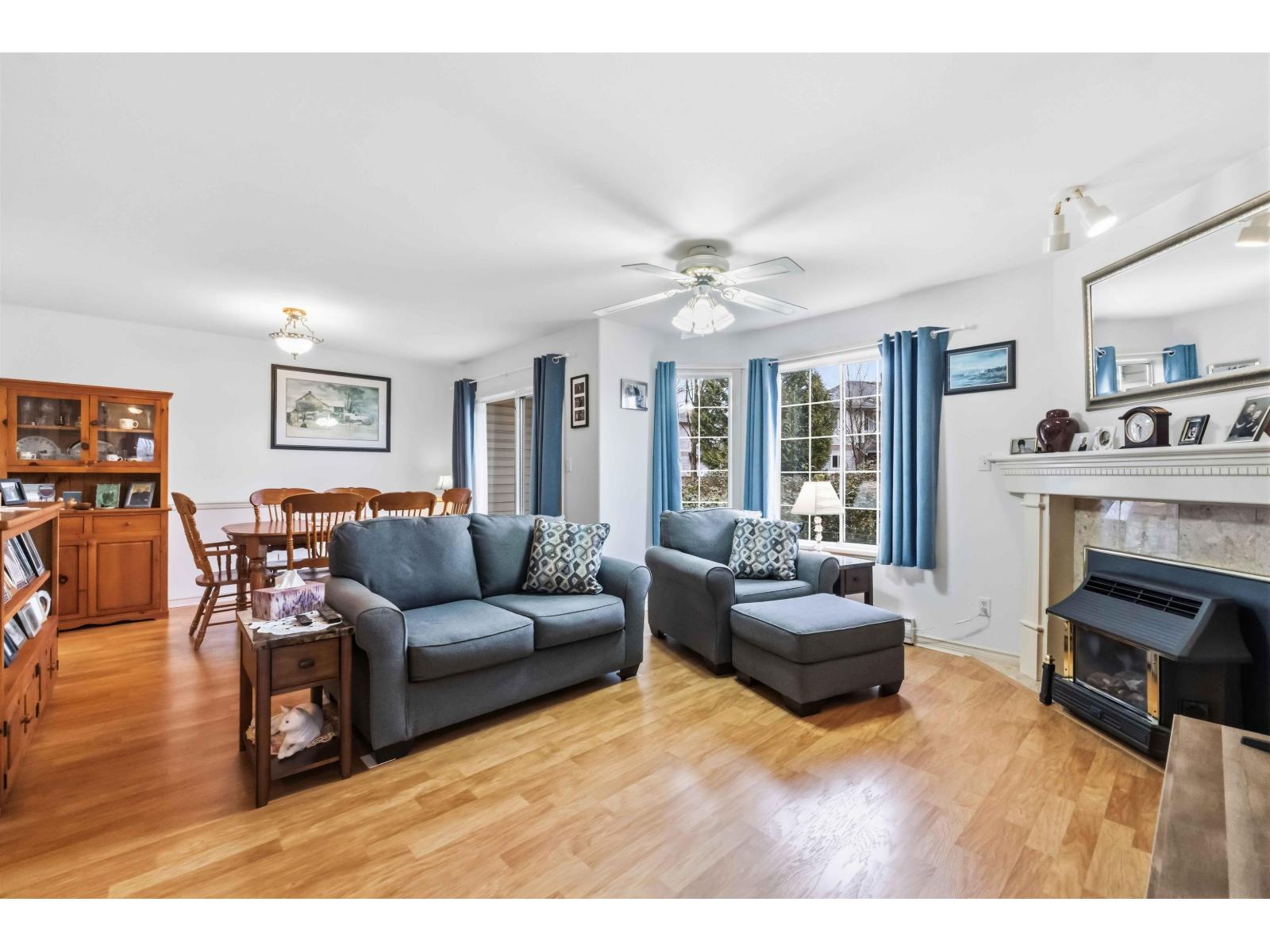 Welcome to Stetson Village in the heart of Cloverdale! Immaculate 2bed/2Bath Ground Floor END UNIT townhome, backing onto green space! This lovely home features a spacious, open kitchen with eating area/family room & living & dining room with gas fireplace, opening to the south facing backyard. The Large master bedroom has plenty of natural light and an ensuite bathroom & walk in closet. Large laundry area plus good storage (5' Crawl space under unit has ample storage). Updated flooring throughout & newer water tank. This home has seen the same owners for the past 21 years and has been exceptionally well maintained! New roof in May 2022. Well run strata with strong contingency and low maintenance fee. Beautiful little family friendly complex at the end of a dead end street. Come see it! (32483214)