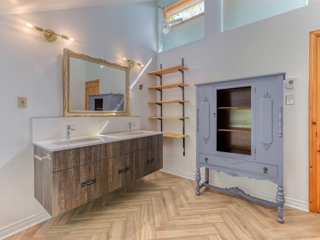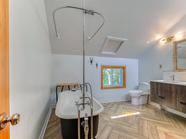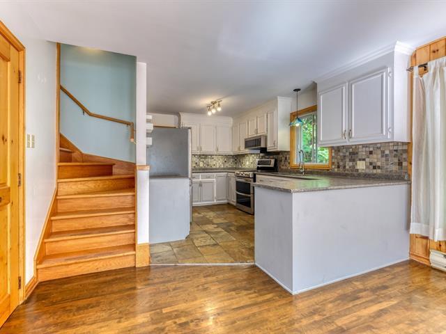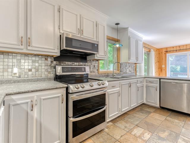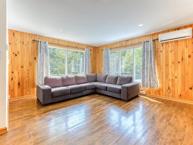 Turnkey property located in a quiet and peaceful area, private river access with its magnificent waterfall in the heart of nature. Large open living space, lots of light, kitchen with walk-in pantry, living room with wood fireplace, 5 bedrooms, 2 bathrooms and 1 powder room, wood panelling and wood floors on the 2 floors, laundry room and family room, 2 wall-mounted heat pumps, shed, garage, carport and parking alley for 5 cars, canoe, picnic table on landscaped lots, near the waterfalls and walking trails, enjoy the nature each day at just 45 minutes from Montreal! Showing available from March 2, 2026. (40681718)