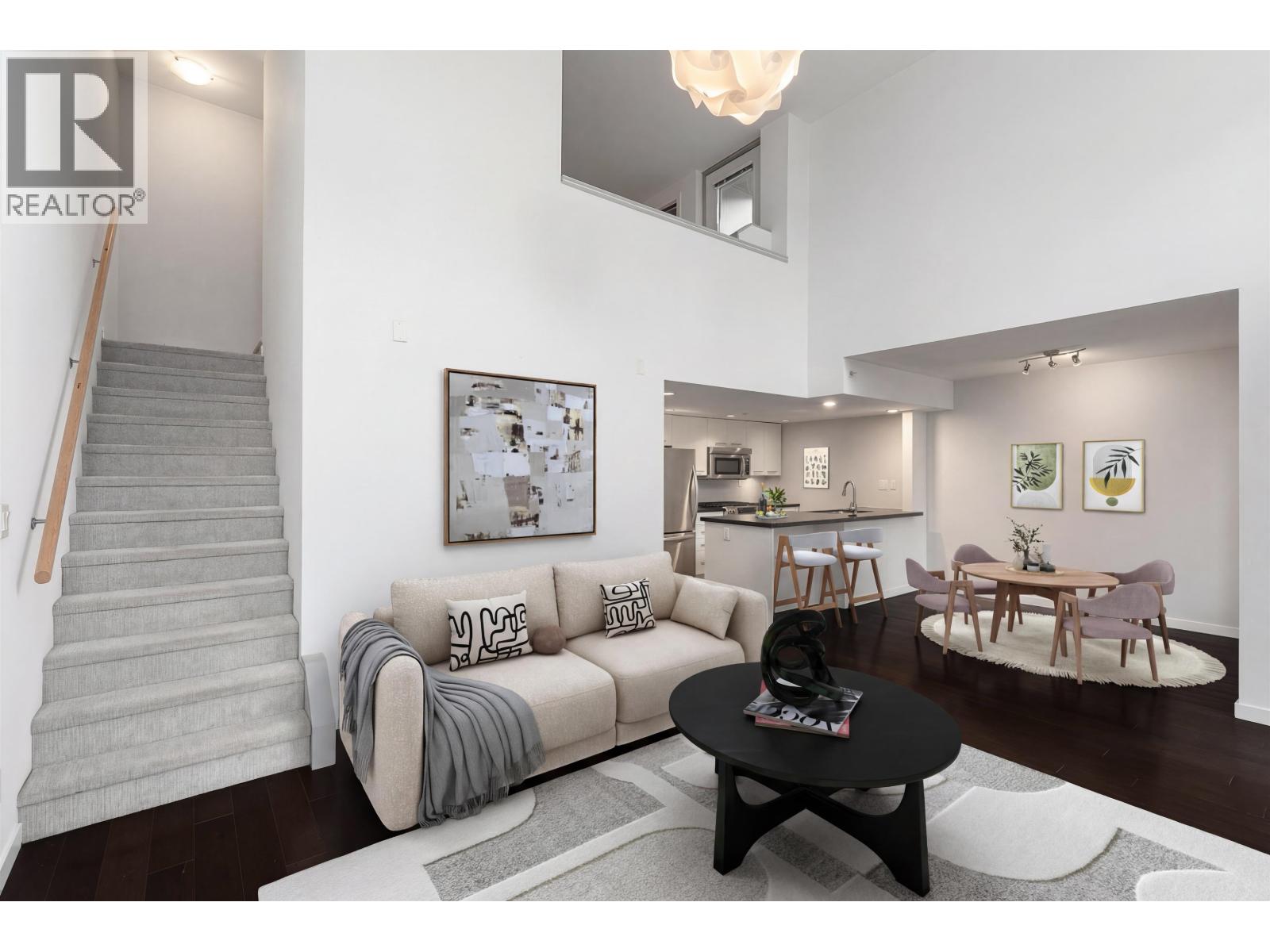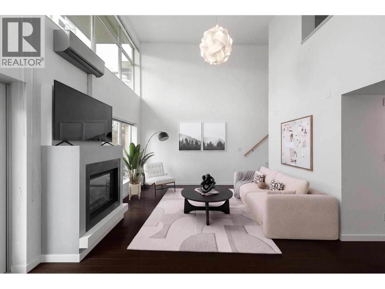 Elevated penthouse loft living at Alina, a concrete boutique building in the heart of vibrant Lonsdale. This top-floor 1 bed, 1.5 bath home offers soaring ceilings and is flooded with natural light. The open yet functional layout includes a dedicated dining space, in-suite laundry and generous storage. Enjoy year-round comfort with air conditioning, a cozy gas fireplace, complete with mountain and partial water views, and the rare luxury of two private outdoor spaces. Parking and a storage locker are included. Steps to Whole Foods, acclaimed restaurants, shops, cafes and excellent transit. A standout penthouse in one of North Vancouver´s most walkable and dynamic communities. Open house Feb 28th, 2-4pm. (32483736)