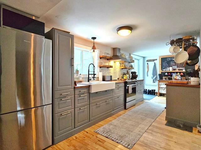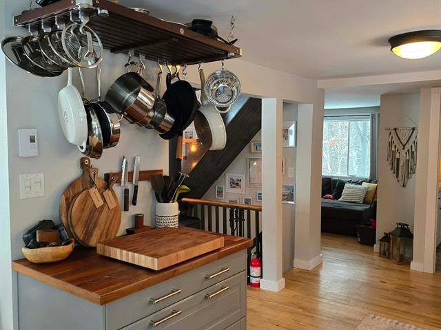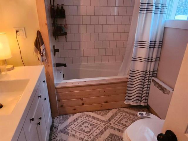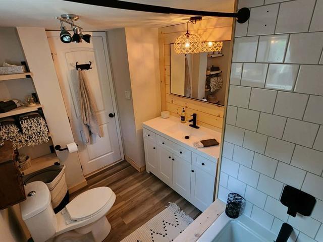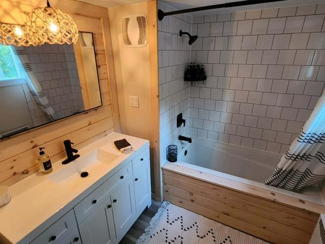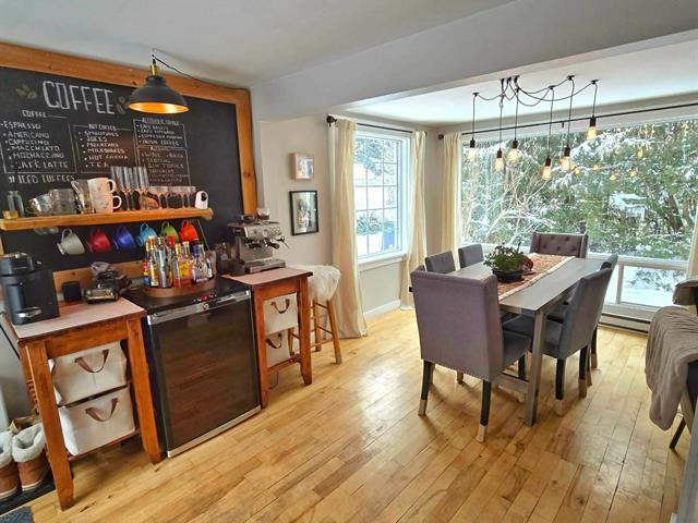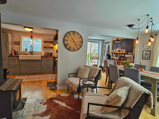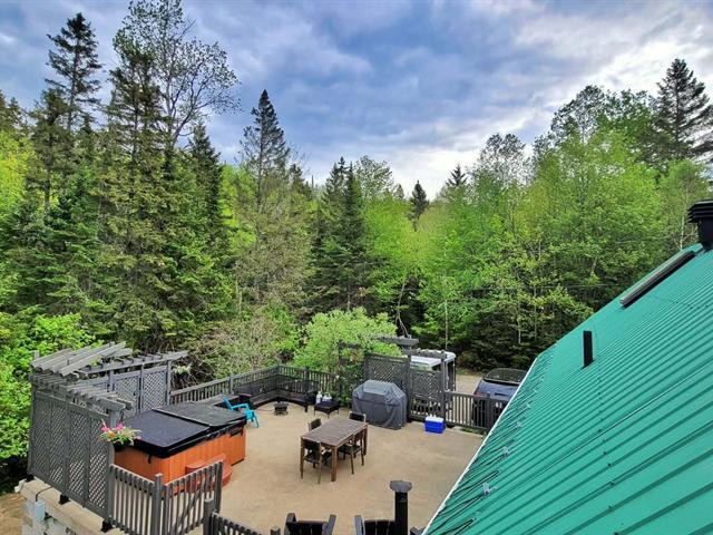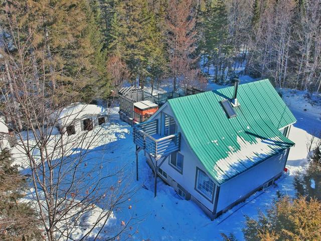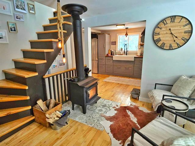 Bright and charming 3-bedroom home located at the end of a private road in a peaceful wooded setting. Renovated with care, it features warm living spaces, a wood stove, and a primary bedroom with a private elevated balcony. Large concrete terrace overlooking the grounds and a long natural stream, plus a spa under the stars. Integrated garage. Notarized access to Lake Saint-Joseph, navigable to Grand Lake Sainte-Marie, with secured motorboat dock rental. Minutes from village amenities, hiking, cross-country skiing and Mont Avalanche. Many possible inclusions. See Addenda. (56192027)