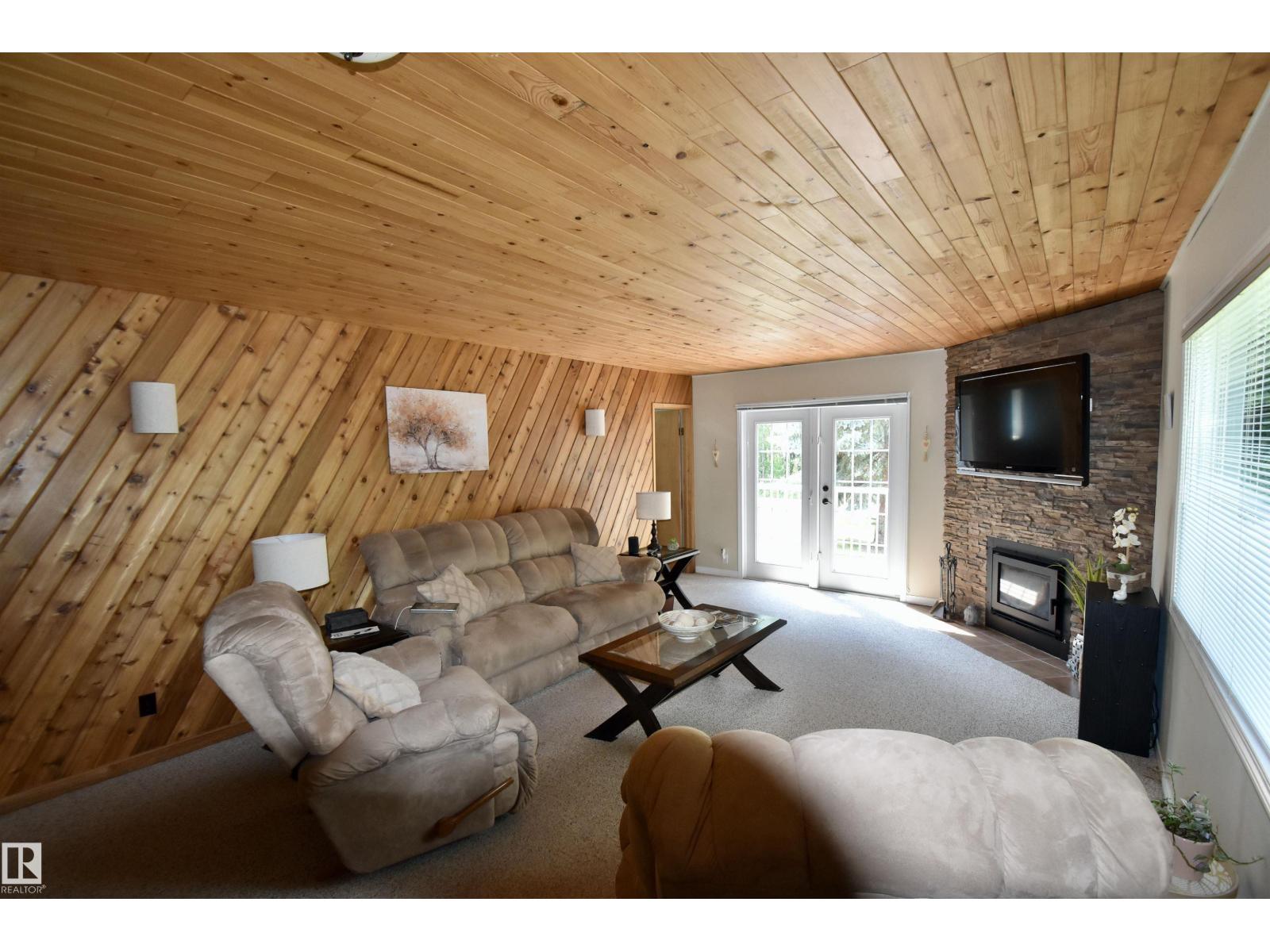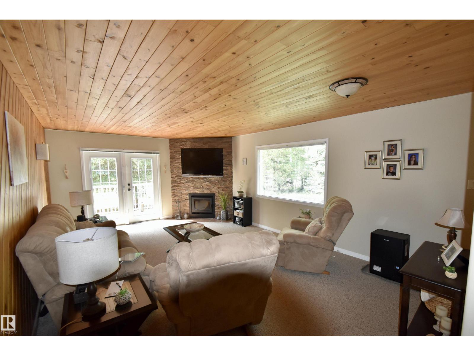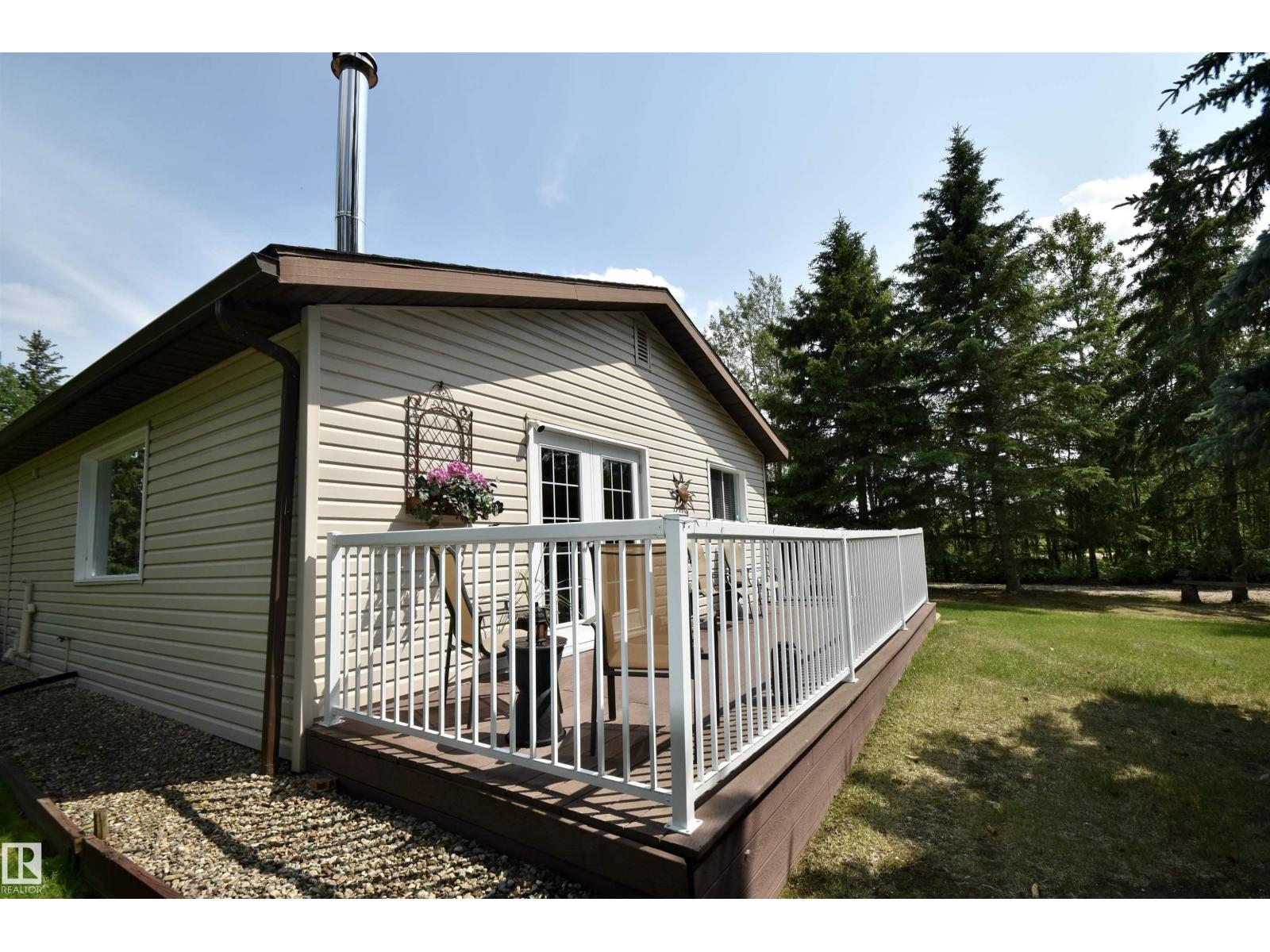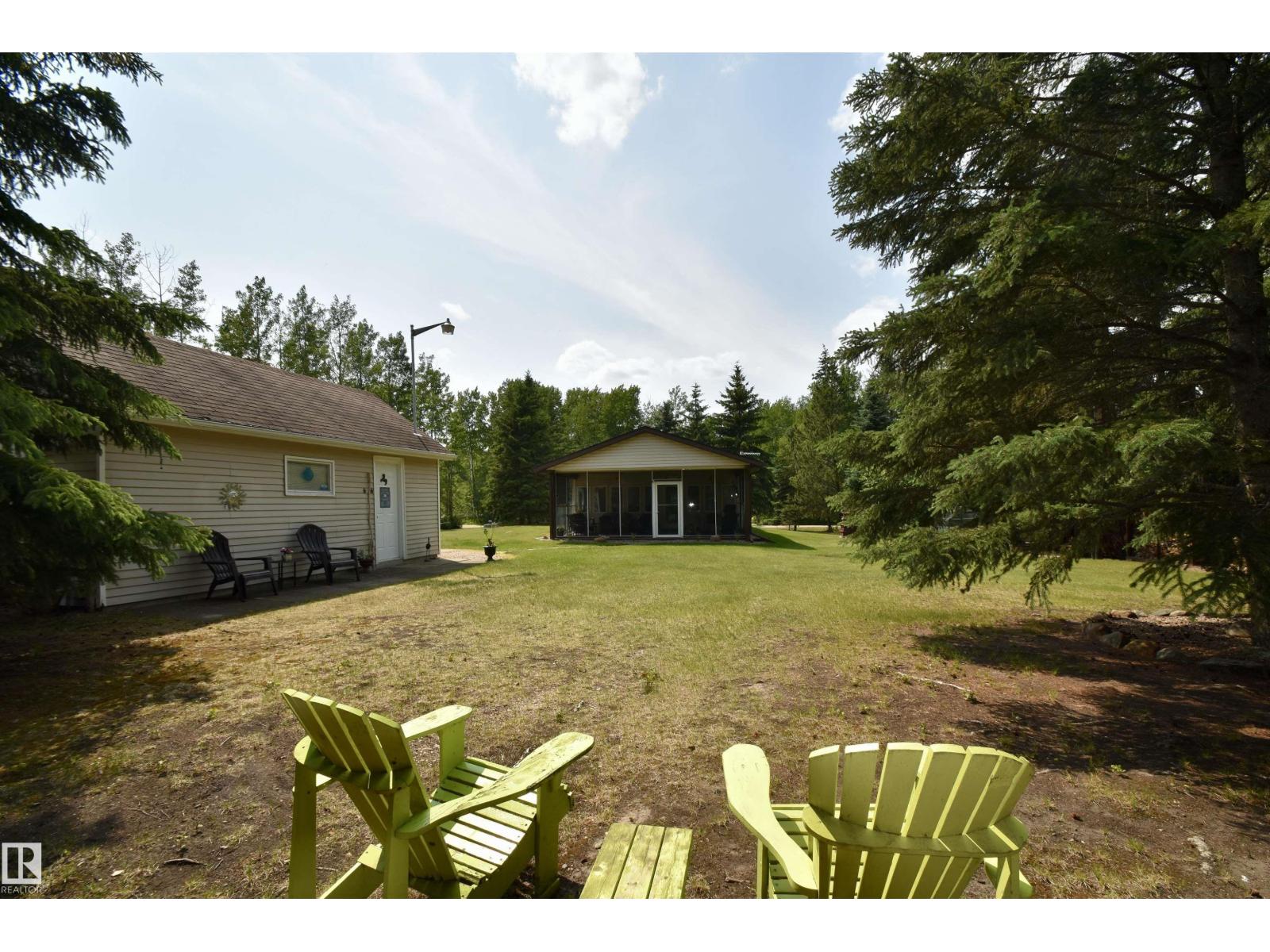 This well-kept 3 bedroom, 1 bathroom property at Floatingstone Lake, just under two hours from Edmonton, is the ideal getaway for families or those who love to entertain. Just a short walk to the lake, you'll enjoy easy access to fishing, boating, and summer fun. The home features air conditioning for comfort, a screened-in front porch perfect for relaxing, and two composite decks—no need to worry about replacing deck boards every few years. Inside, a spacious living room with a wood fireplace and dining area provide plenty of space for gatherings. The property includes a double car garage and a second garage currently used as a workshop. There’s room to host with multiple trailer parking spots, power hookups, and a cozy bunkhouse with two bunkbeds. Whether you're looking for a recreational escape or a quiet year round place to unwind, this turn-key property has everything you need with no major work required. Enjoy all the lake life has to offer from your own private retreat. (33865749)