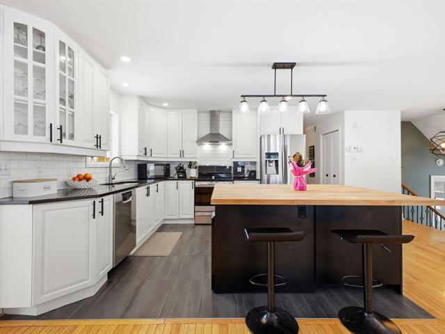 Ferme Limbour GatineauAn elegant blend of contemporary design and refined living, this exceptional bungalow in the sought-after Ferme Limbour area offers generous spaces, quality finishes and a private setting. It features a double integrated garage plus an additional single garage, a bright open-concept layout, a striking dining room with pine plank ceiling, and a high-end kitchen with quartz countertops, oversized butcher-block island and ceramic backsplash. The main bathroom includes a double ceramic shower with glass door. Fully finished basement with family room, two bedrooms, full bathroom and direct garage access. Who's lucky! (48577656)