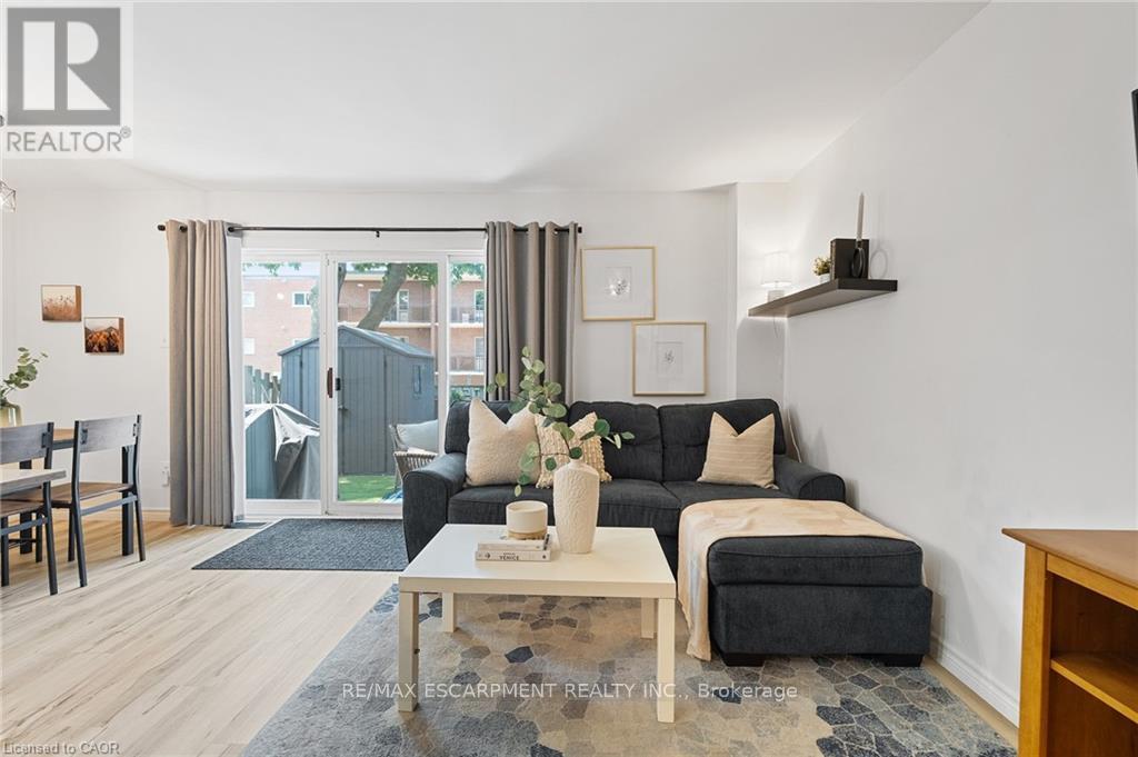 Stunningly renovated 3-bedroom, 1-bathroom two-storey condo townhome in St. Catharines desirable Carlton neighbourhood. Tucked away at the back of a quiet, family-friendly complex, this home offers added privacy, a fully fenced backyard, and a stylish, move-in ready interior. Features a bright, open-concept main floor with new vinyl plank flooring throughout, large principal rooms, and a custom kitchen with modern cabinetry, stainless steel appliances, quartz countertops, and a breakfast island. Sliding patio doors lead to a private yard with patio, green space, and a shed perfect for relaxing or entertaining. Upstairs includes 3 spacious bedrooms with contemporary finishes and a renovated 4-piece bathroom. The partially finished basement adds flexible space for a rec room, home office, playroom, additional bedroom or gym. Freshly painted throughout, move-in ready and located near parks, schools, shopping, and transit this home offers the benefits of condo living without compromising on space or lifestyle. (42205092)