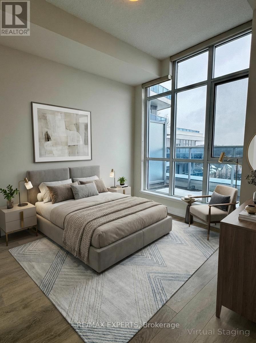 Welcome to Xpression Condos in one of Richmond Hill's most convenient and desirable locations. This sun-filled 1-bedroom suite offers nearly 500 sq ft of thoughtfully designed living space with impressive 10 ft ceilings and an unobstructed east-facing view that brings in beautiful natural light throughout the day. Designed with quality in mind, the unit features hardwood flooring throughout, quartz countertops in the kitchen and bathroom, custom-designed cabinetry with a built-in island, and premium stainless steel appliances. The spacious bedroom and oversized 105 sq ft balcony create an open and airy feel rarely found in comparable units. Ideally located directly across from Hillcrest Mall and steps to T&T Supermarket, No Frills, public transit, and schools, with easy commuter access to major routes. Excellent, well-maintained building amenities. Modern, clean, bright, and move-in ready. Unit has been virtually staged* (42205145)