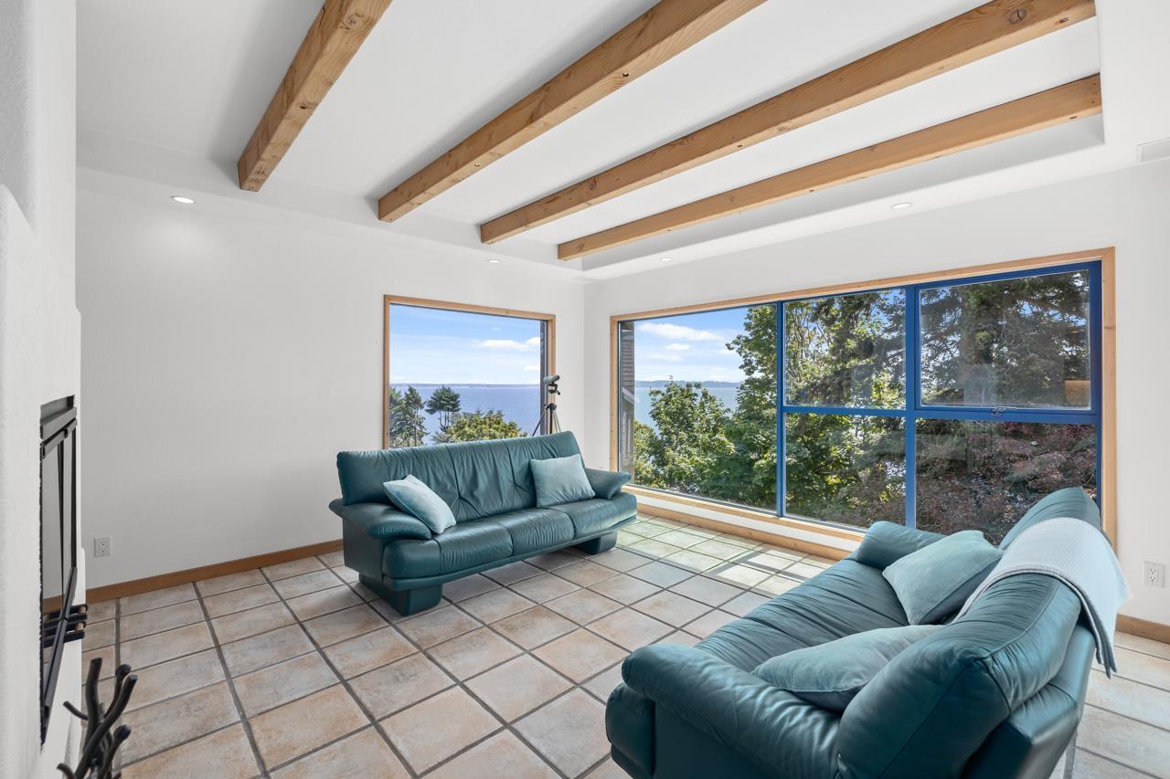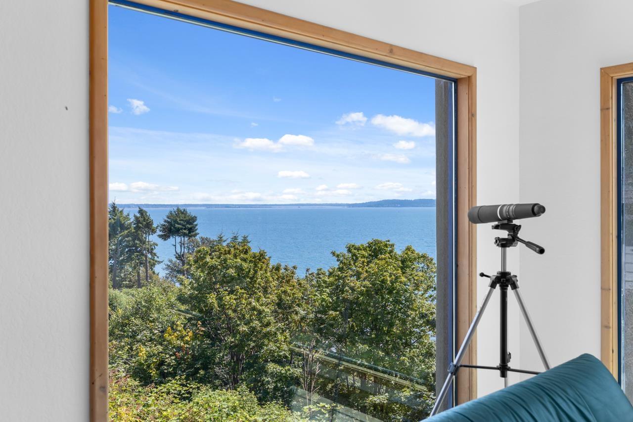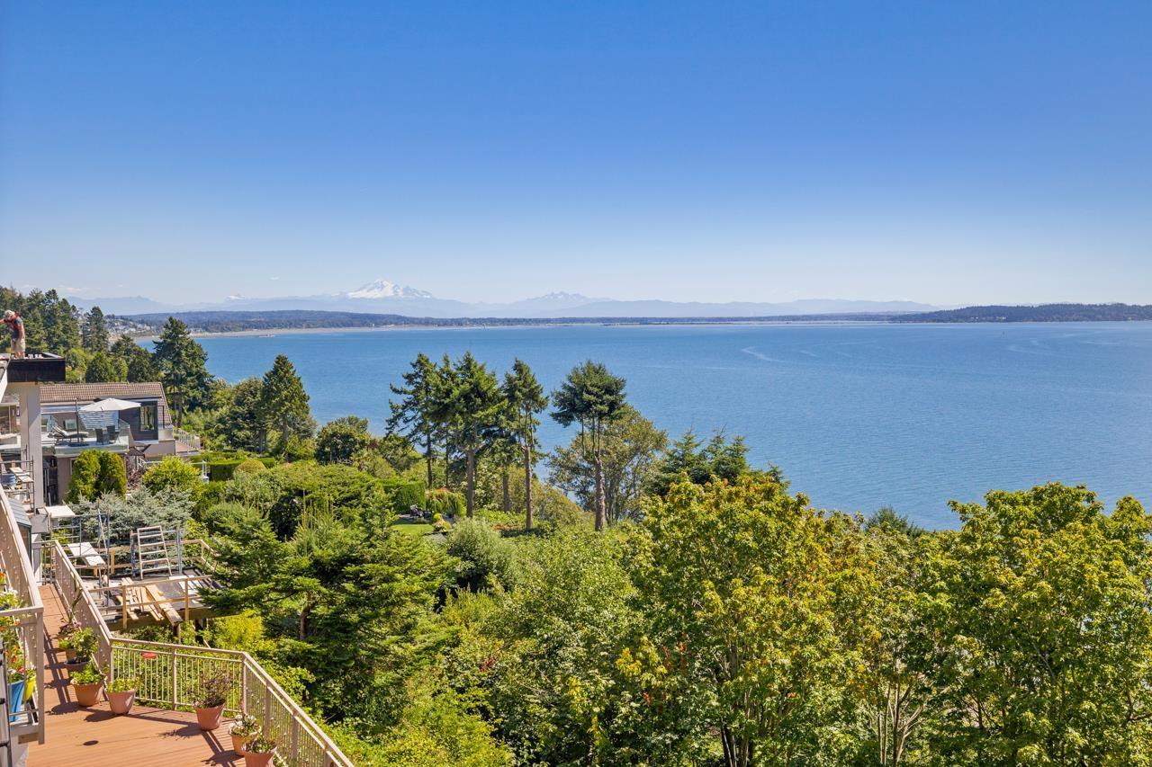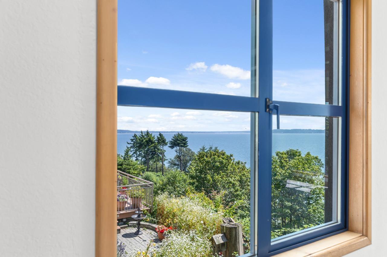 Renowned local and Vancouver Architect " Mark Ankenman" designed and built this home for their own personal use. Situated on the BLUFF, Ocean Park, quiet setting with great ocean views and privacy from a City Parkland. This home was over Engineered, built to high quality standards and still to today sits on this Bluff lot - is solid and has great bones. Awaits some one to update and make it a spectacular residence again. Ideal home for families or a Professional couple, bedrooms that are split with the Primary on the top and additional rooms on lower level. In floor radiant heating, open concept floor plan and some bonus storage are under the suspended driveway slab. Stairs down to the beach area and ocean, right beside the home by way of a City Park - perfect Beach lifestyle offered. (32484496)