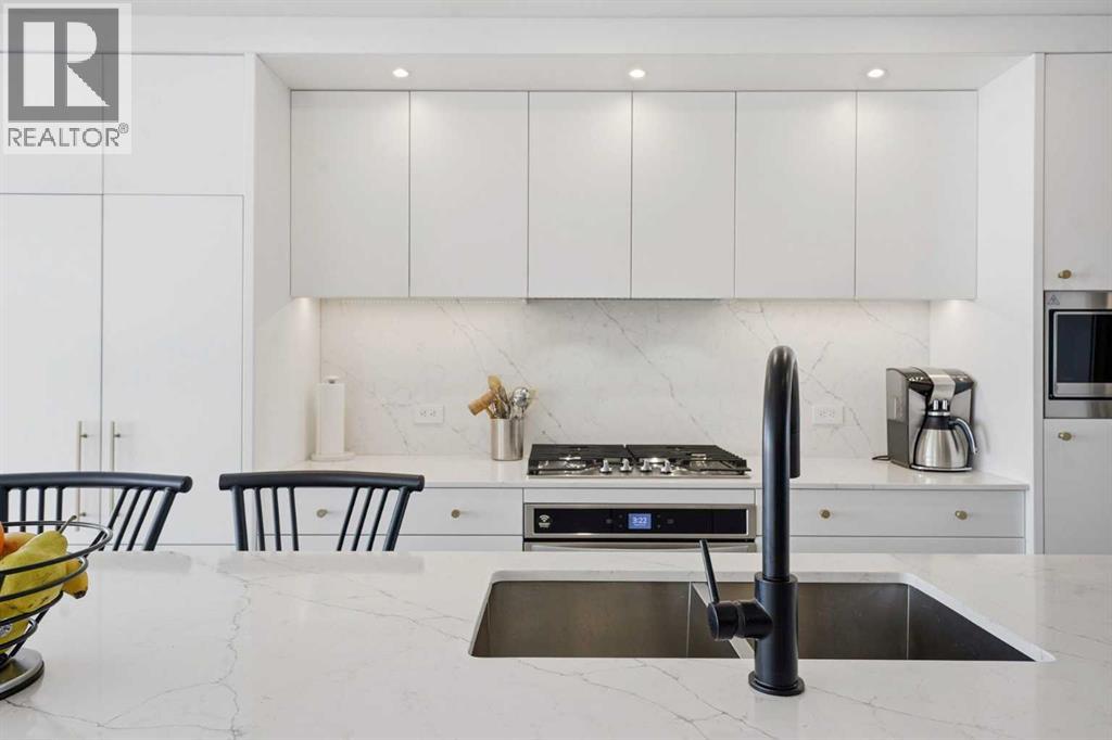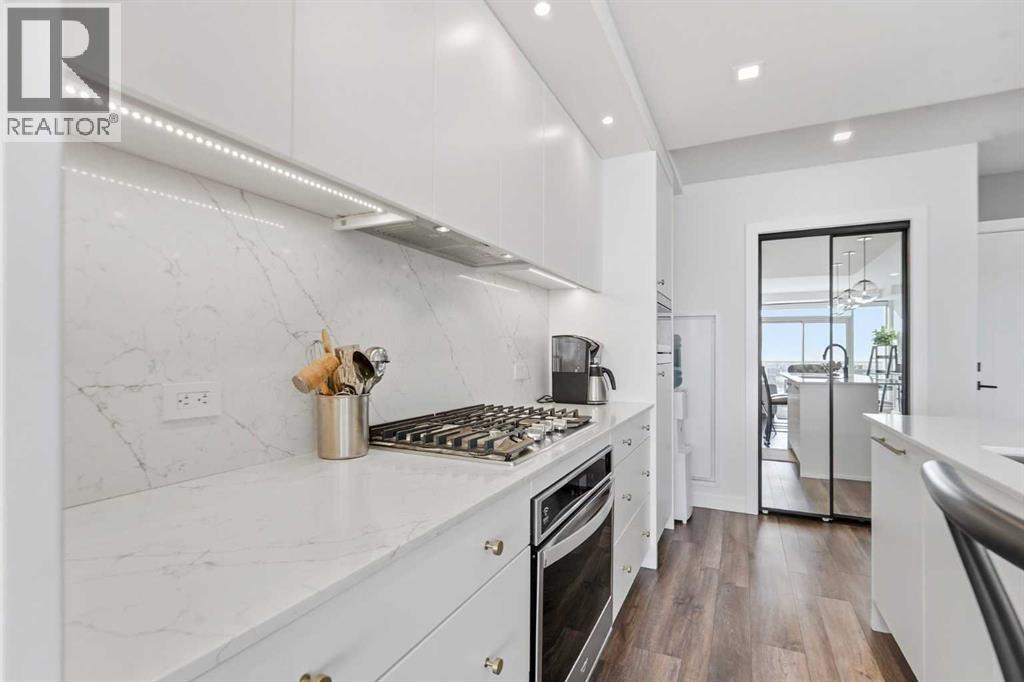 Welcome to Gateway by Truman, where striking contemporary design meets unrivalled urban convenience in Calgary’s highly sought-after West District. This exceptional and sun-drenched 2-bedroom, 2-bathroom unit combines sophisticated modern luxury with seamless everyday functionality. Featuring impressive 9-foot ceilings, expansive floor-to-ceiling windows, and rare custom luxury flooring unlike any others in the building. This residence is filled with inviting natural light and boasts an airy, open-concept layout perfect for both serene relaxation and vibrant entertaining. The gourmet, chef-inspired kitchen showcases elegant quartz countertops, premium full-height soft-close cabinetry, under-cabinet lighting, and top-of-the-line stainless-steel appliances including a gas cooktop and built-in oven. The generous primary suite includes a walk-through closet and an opulent ensuite with double vanities and a glass-enclosed shower, while the second bedroom and full bath provide flexible space for guests, roommates, or a dedicated home office setup. Step onto your oversized, sun-drenched private balcony to enjoy tranquil south exposure and spectacular evening sunsets, complete with a gas line for BBQ or outdoor heating. For all your storage needs, two additional storage lockers are included. Additional conveniences include in-suite laundry, titled underground parking, and access to exceptional on-site amenities such as the owner’s lounge, secure bike storage, and a breathtaking expansive rooftop terrace. Strategically situated just steps from charming boutique shops, cafés, Sobeys and the new West District retail corridor, this residence offers an enviable, unparalleled lifestyle. At its heart lies Radio Park, an award-winning 8-acre urban green space that serves as the community’s social centrepiece. With walking paths, an amphitheatre, a skating pond, and diverse year-round recreational programming, it’s one of Calgary’s most thoughtfully designed public parks, effortless ly blending nature, art, and community life. Experience sophisticated, elevated living in one of West Calgary’s most dynamic and highly desirable neighbourhoods, where luxury, location, and lifestyle perfectly converge. (31678236)