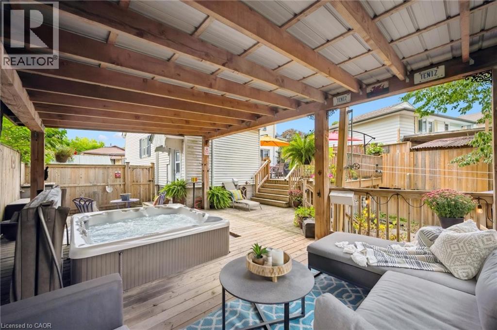 Welcome to 145 Bridgeport Rd E, where modern elegance meets investment potential! With a newly renovated bathroom and sleek lower level flooring, this charming one-and-a-half-story detached home is the ultimate opportunity for first-time homebuyers seeking a mortgage helper, families needing an in-law suite, or savvy investors eyeing a lucrative rental opportunity. A stunning large spruce tree in the front yard provides unique privacy while maintaining easy access to all the conveniences of Bridgeport Rd. The double-wide driveway accommodates five vehicles, ensuring ample space. Step into your fully fenced backyard, featuring an expansive 870 sq ft of deck space adorned with a 24ft custom gazebo and a luxurious eight-seat Beachcomber hot tub (2020) perfect for unwinding after a long day. An interlock stone path leads to a beautifully designed stone patio, complete with a retaining wall and efficient drainage. Enjoy lushly landscaped gardens, a built-in garden shed, and a two-level deck that offers a serene escape with stunning park-like views. As you step inside, enjoy an open floor plan filled with natural light and newly renovated living spaces. Patio doors seamlessly connect the indoor and outdoor living areas. All windows and doors were replaced in 2022, enhancing aesthetics and energy efficiency. The main floor kitchen (2022) shines with elegant quartz countertops, a breakfast bar, cozy coffee nook, a stylish tile backsplash, and abundant cupboard space. On the second level, you’ll find two generously sized bedrooms with original cherry wood floorboards, fresh paint throughout, and extensive attic storage. The lower level features new flooring, a one-bedroom apartment with a separate entrance, shared laundry, and a newly renovated three-piece bath (2023). This rare property is move-in ready and minutes from uptown Waterloo, restaurants, grocery stores, schools, and the LRT. (70197224)