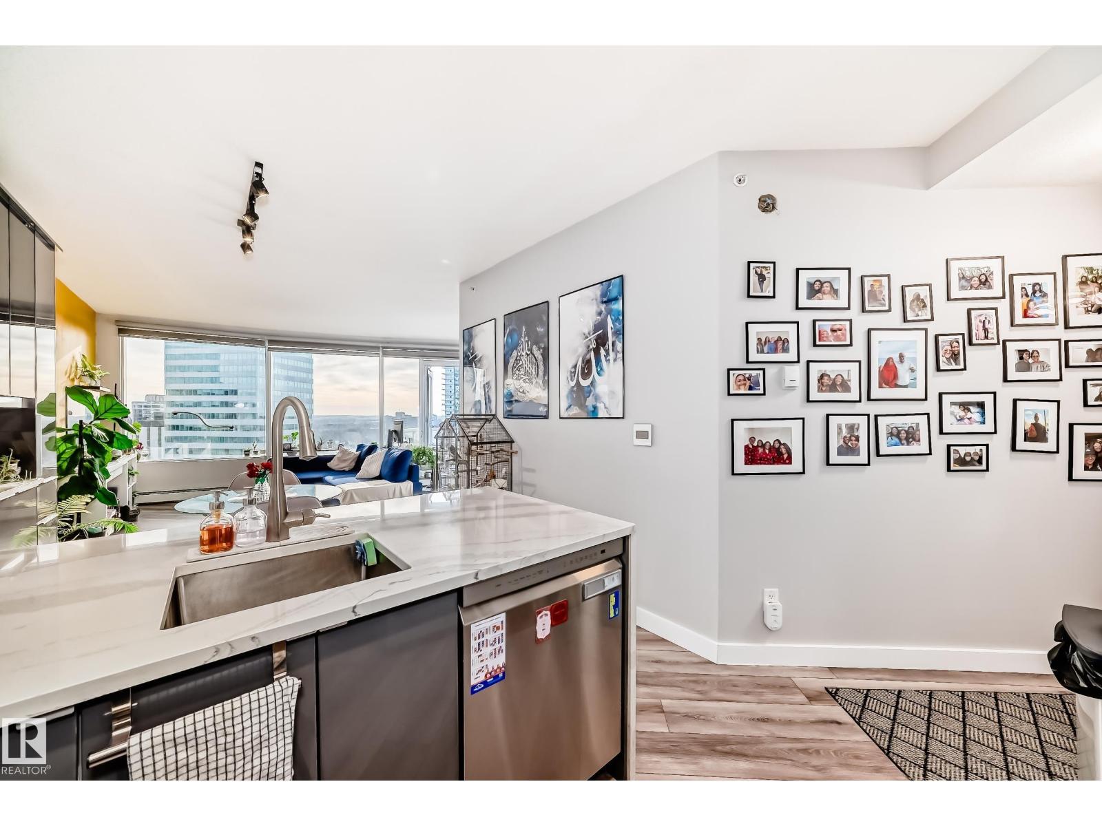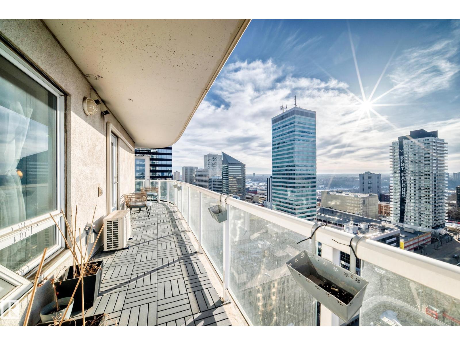 This stunning 20th-floor condo in the Icon I building features a complete renovation, air conditioning, and a massive balcony with beautiful south-facing views. Located on one of Edmonton’s most walkable streets, the home is just steps from top-tier dining, the LRT, and Rogers Place. The interior boasts a modern kitchen with waterfall granite countertops and premium stainless steel appliances, flowing into an open, well-lit living area with lots of built-in cabinetry. The primary suite includes a walk-in closet, an updated ensuite, and direct balcony access, while the second bedroom is privately situated down the hall near a second full bathroom. Additional highlights include in-suite laundry, a titled underground parking stall, and a pet-friendly policy subject to board approval. (33866423)