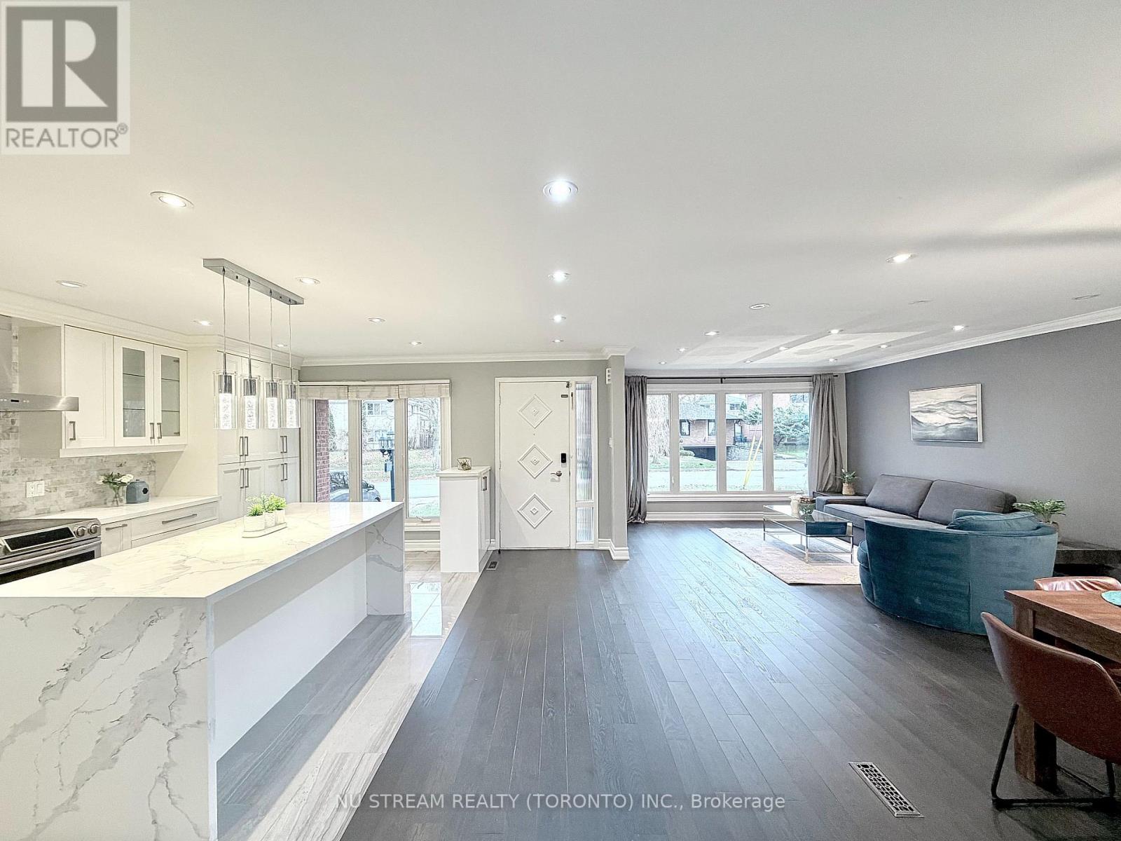 Welcome to this exceptionally refined and impressively spacious detached residence in the highly sought after and connected Don Valley Village community. Step inside and be greeted by a home that exudes elegance and modern sophistication. The interior has been tastefully updated with premium, high-quality finishes that still feel remarkably fresh and current. Sunlight pours through expansive windows, illuminating the rich hardwood flooring that flows seamlessly throughout. Smooth ceilings, ample pot lighting, and a modern oak staircase with glass railing add a clean, contemporary touch to the home's interior. The gourmet kitchen serves as a functional and inviting central hub, complete with custom cabinetry, polished quartz countertops, high-end stainless steel appliances, and a large centre island with overhang-ideal for everyday meals and casual gatherings. The open-concept layout on the main floor connects the kitchen with the living and dining areas, creating a practical and enjoyable space for both daily living and entertaining. This rare 4-level back-split offers impressive flexibility for larger households or multi-generational living. The upper levels include four comfortable bedrooms, with the primary suite featuring a private 3-piece ensuite. The ground level, with its own separate entrance, provides a versatile option for extended family or guests. The fully finished basement adds two more bedrooms presenting notable income opportunities. Perfectly situated in the heart of Toronto, this home offers unmatched convenience with effortless access to Hwy 401 and 404, Fairview Mall, Seneca College, a variety of shopping plazas, Don Mills Subway Station, and the GO Station. (42205989)