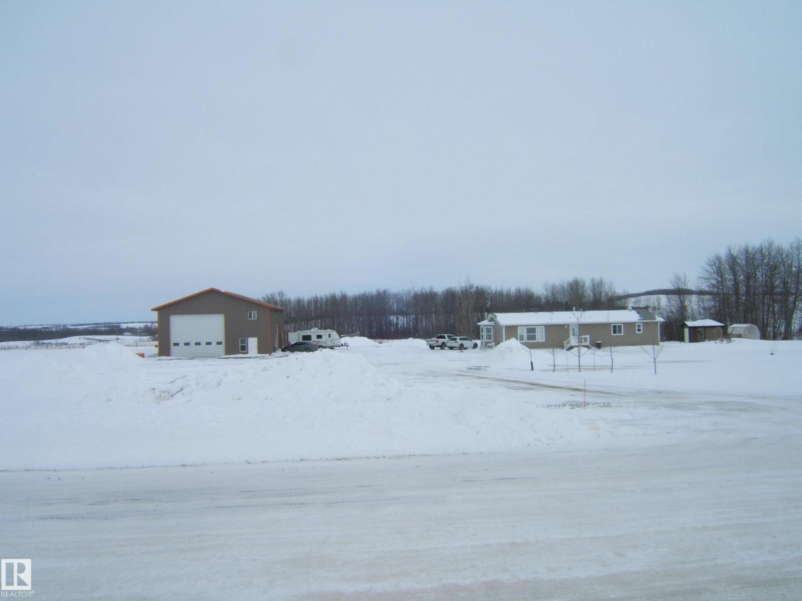 Country Living at it's Best on 10 Acres, in the County of Two Hills and Only 10 Minutes from the Town of Two Hills and 20 Minutes to the Town of Vegreville. Great Location as only 1/2 Kilometer of Gravel and then All Pavement! Pride of Ownership Shows through out this Well Maintained Home & Property! Large Deck with a Metal Gazebo Welcomes You Into a Spacious Entrance. Kitchen Features Abundance of Kitchen Cabinets, Quality Appliances, Plenty of Counter Space and a Large Work Area. Dinning Room Features ,Bay Window for Plenty of Natural Light and Extra Space. Main Floor is then Completed with Generous Size Living Room, 4 Piece Main Bathroom, High Efficiency Furnace with A/ C Storage/Laundry/Utility Room, 2 Spare Bedrooms and a Primary Bedroom with 2 Large Closets and a 3 Piece Ensuite. The Main Feature of this Property that puts it on top of the List is the 40' x 80' Shop, with In Floor Heating, Washroom, Office and a Small Bedroom . The 10 Acres Features Grassed Area, Small Pond and Plenty of Space (33866636)