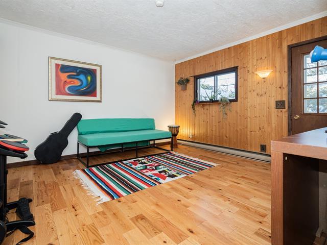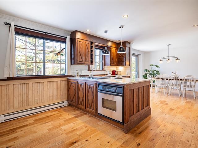 Discover the timeless charm of this warm, well-maintained Canadian-style home. Offering 5 rooms, including 4 bedrooms on the same level and a versatile additional space ideal for a home office or playroom. Enjoy year-round comfort with two heating sources: a regulation-compliant wood stove and a pellet stove. Filled with natural light from large windows and skylights, the home also features a private backyard bordered by cedar hedges. Prime location close to public transit, daycares, and schools including a 4-year-old kindergarten. (47837900)