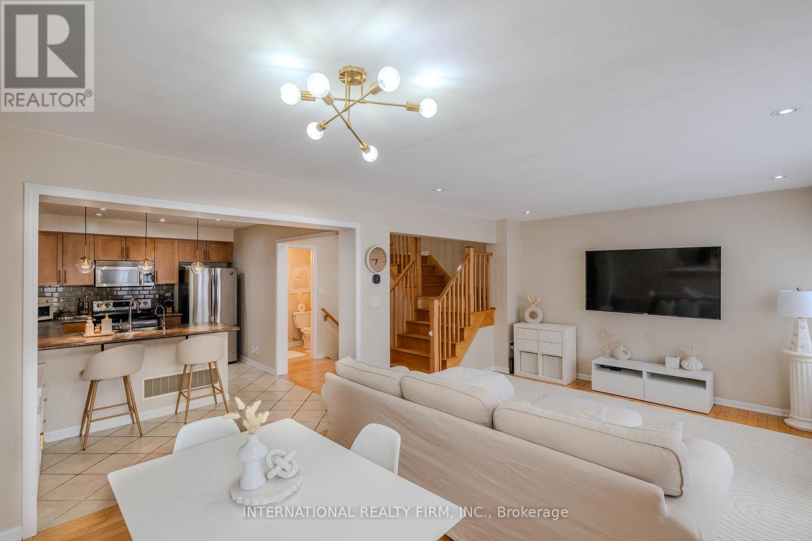 Welcome to this beautifully freehold three-story townhome, built by Mattamy Homes and ideally located in Milton's sought-after Hawthorne Village, a well-established community known for its walkability, family-friendly atmosphere, and strong sense of neighborhood. Step inside and head up to the sun-filled second level, where you'll find the heart of the home. The kitchen features with a full waterfall edge, professionally installed to create a timeless focal point. The extended peninsula offers generous seating, making it the perfect place for morning coffee, casual meals, or gathering with friends. The open-concept living and dining area flows seamlessly to a private balcony, ideal for relaxing at the end of the day or enjoying warm summer evenings. The home is completely carpet-free, and showcases hardwood flooring on all levels, including staircase, delivering a clean, modern look and low-maintenance living. Upstairs, two comfortable bedrooms provide flexibility for families, young professionals, or those working from home. Both bathrooms have modern fixtures, while the powder room features a new vanity with quartz countertop, new faucet, mirror and backsplash. Convenient laundry located in between the Ground floor and 2nd floor. The ground level offers a versatile den with direct garage access, ideal for a home office, workout space, or cozy retreat. Parking for three vehicles, including one in the garage and two on the private driveway, adds rare convenience. Close to top-rated schools, parks, trails, shopping, transit, and the Milton GO Station, this move-in-ready home offers not just a place to live, but a lifestyle that truly works for modern living. (42206214)