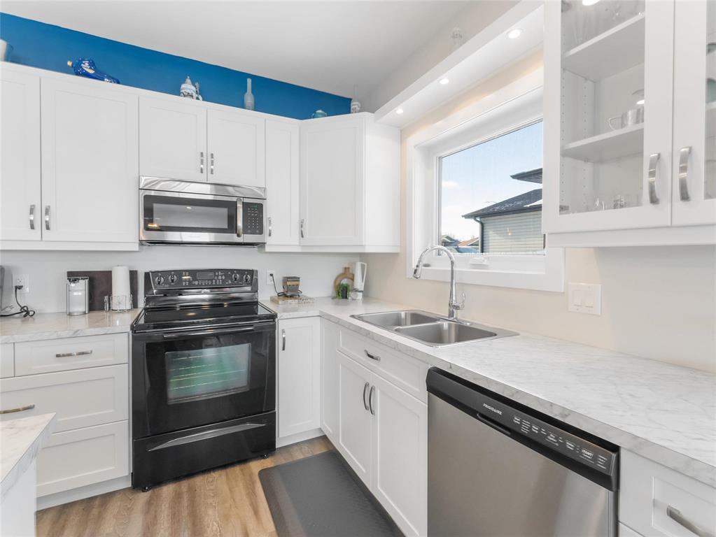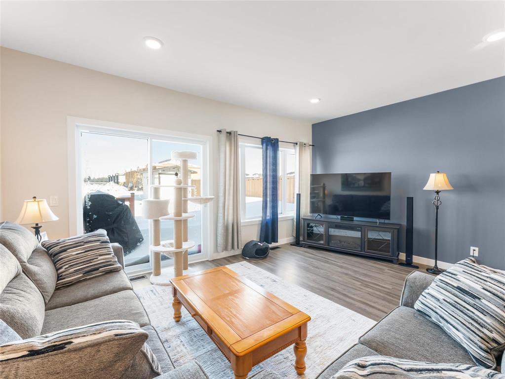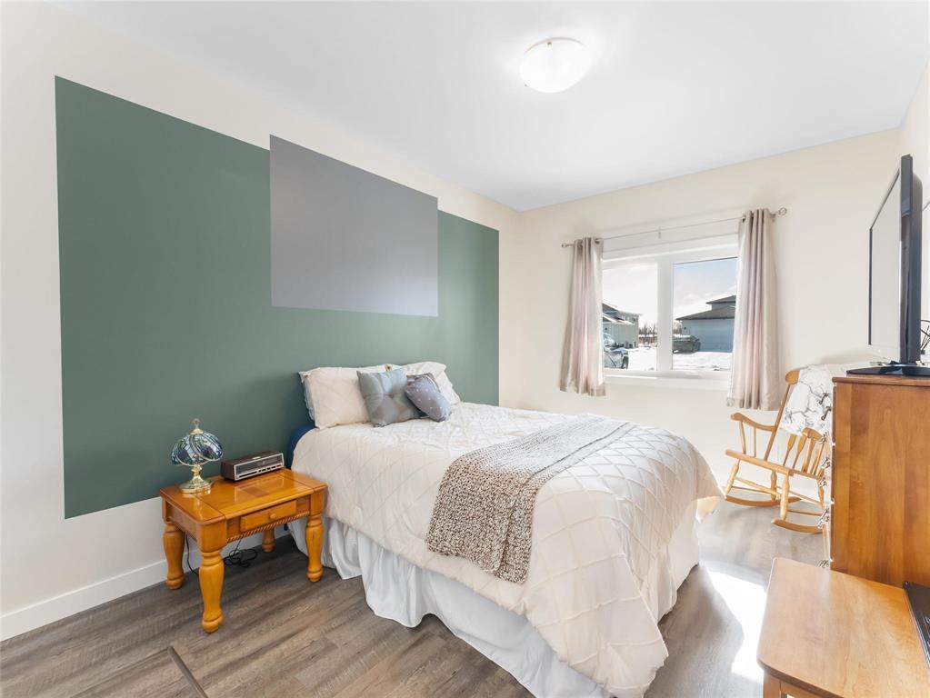 R16//Kleefeld/Offers reviewed the evening they are received. Welcome to this well maintained spacious, open-concept bungalow with no steps involved! Enjoy the bright white kitchen featuring soft-close cabinetry, an 8' island & abundant cupboard & counter space making it the perfect space to entertain and gather as the kitchen flows seamlessly into the dining area and living room, where patio doors open to a meticulously maintained landscaped backyard complete w/ a patio, fire pit, and shed. The generous primary bedroom incls a walk-thru closet and 3 pc ensuite. A well-sized second bedrm is conveniently located next to the main 4 pc bathrm. Additional highlights incl 9' ceilings, 36-inch-wide doorways, ICF foundation. The crawl space provides excellent storage and houses the hot water tank ('24), electric furnace and HRV. The south-facing covered front patio is great for relaxing on and conversing with the neighbors. The oversized single attached garage is heated & insulated and can fit a large truck! The driveway can accommodate up to six vehicles (fewer if larger trucks). The backyard backs onto a walking path leading to green space and a quick walk to the school, great for enjoying the outdoors. (231995326)