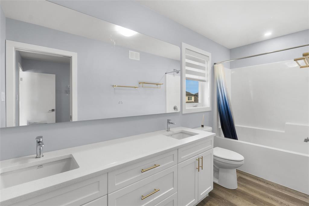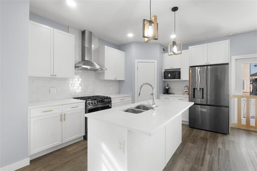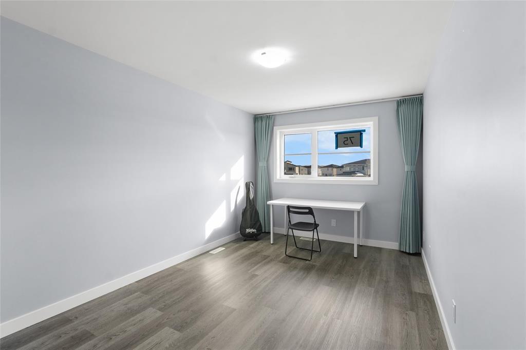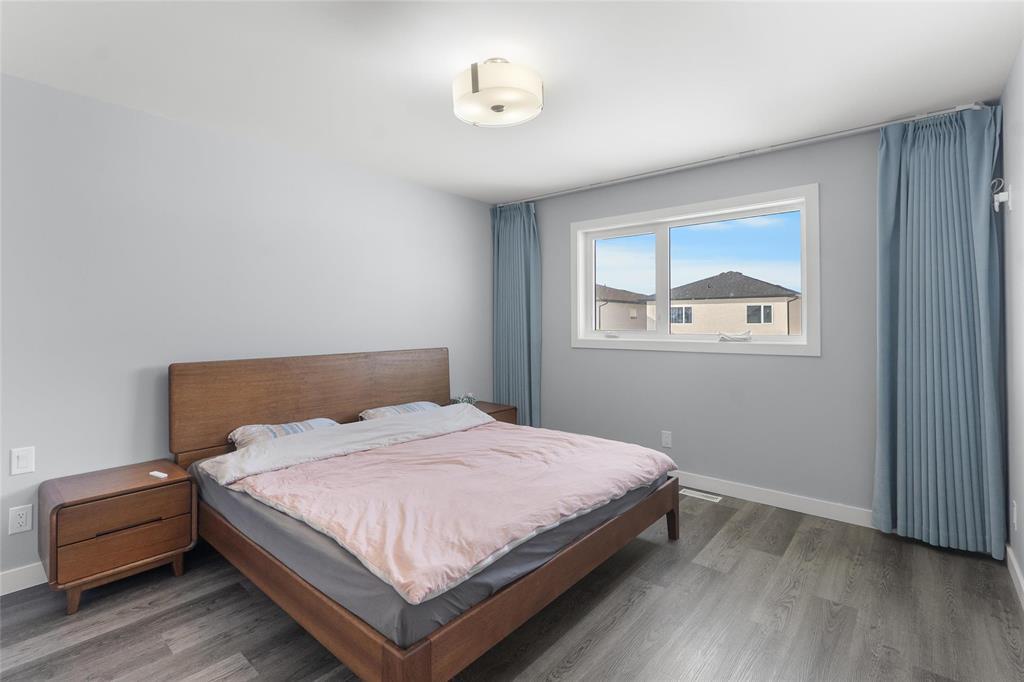 1R//Winnipeg/SS now, offers as received. Set in family-friendly Prairie Pointe, this custom 2-storey offers 1904 sqft of well-planned space with standout curb appeal and quality finishes throughout. Built for real life and multi-generational living, the main floor includes a spacious bedroom and a full bathroom, ideal for guests, grandparents,or a private home office. The open main level features 9' ceilings and a bright, modern kitchen with quartz countertops, tile backsplash, a gas stove, and high-end appliances, all designed to keep the family connected while you cook and entertain. Upstairs, the primary suite is a true retreat with a walk-in closet and private ensuite. Two more generous bedrooms include a second walk-in closet, plus another full bathroom and convenient upper-level laundry.Finishing details elevate the home, including LED mirrors in every bathroom and brass cabinet hardware. Enjoy a quiet street close to schools, parks, and amenities, with plenty of room for kids to grow and everyone to have their own space. The layout flows beautifully and feels bright from morning to night. Move in with confidence and enjoy a home that looks as good as it lives. Book your private showing today. (231995329)