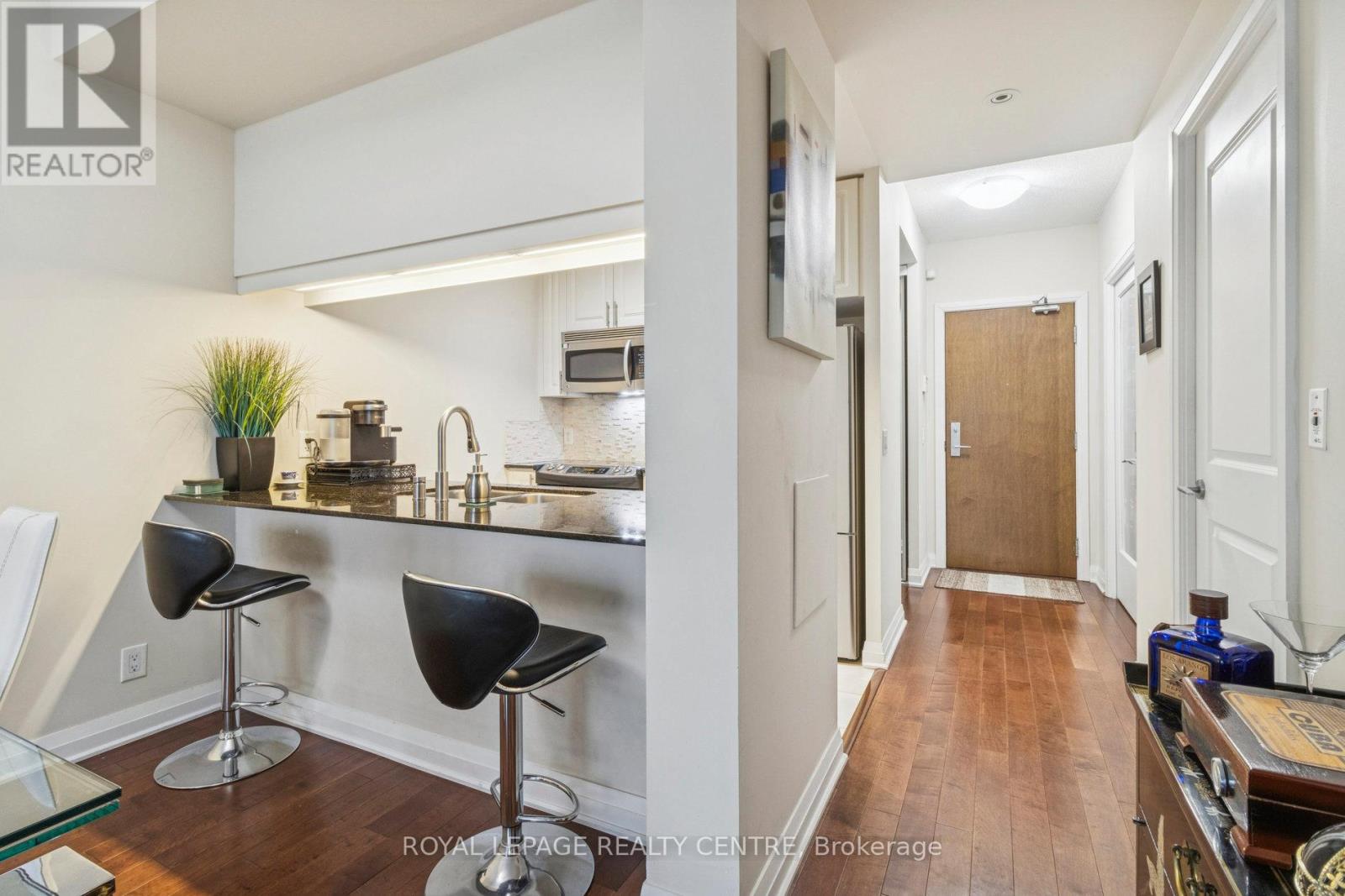 Beautifully Updated 1 Bedroom + Den Suite (735 sqft + balcony 112 sqft). Sought After Stonebrook Condominiums, Just Steps to Clarkson GO Station. This Move-In Ready Home Features 9' Ceilings, Hardwood Floors and Floor to Ceiling Windows That Fill The Space With Natural Light. The Open Concept Kitchen With Breakfast B ar Overlooks The Spacious Living and Dining Areas, Leading to a Private Balcony. The Large Primary Bedroom Offers Double Closets, While The Ensuite Includes Both a Separate Shower and Tub. The Den With Double Glass Doors Is Perfect For a Home Office. Freshly and Professionally Painted in Neutral Tones, This Suite Offers a Bright, Modern Feel. Enjoy Resort-Style Amenities-24 Hour Concierge, Fitness Centre, Indoor Pool, Sauna, Party Room, Theatre, Games Room, Guest Suite, Car Wash, Pet Spa and More For a Truly Luxurious Lifestyle. (42206750)