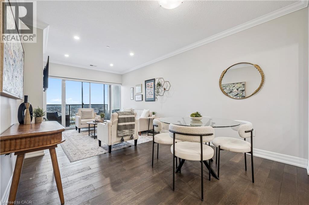 Welcome to this stunning 2 Bedroom + Den, 2-bathroom condo at 1880 Gordon Street, a bright and beautifully designed suite in Guelph's sought-after Gordon Square community. This sophisticated unit features an open-concept layout with a generous living and dining area, a modern kitchen with quartz countertops, a large island and stylish cabinetry, and floor-to-ceiling windows that flood the space with natural light while showcasing tranquil views of green space and the city. The primary bedroom retreat offers a walk-in closet and private 3-piece ensuite, while the second bedroom, versatile den and additional 4-piece bathroom provide flexibility for family or guests. The den is ideal for added living space, storage or a home office. Enjoy a spacious in-suite laundry room with ample storage, along with a private balcony perfect for morning coffee or evening sunsets. Residents have access to premium amenities including a fitness centre, golf simulator, games and party room, guest suite, and more. This unit also includes one underground parking space and an owned locker. Perfectly located in Guelph's vibrant south end close to shopping, restaurants, entertainment and commuter routes, Unit 809 delivers comfort, style and convenience. Book your private showing today! (70195488)