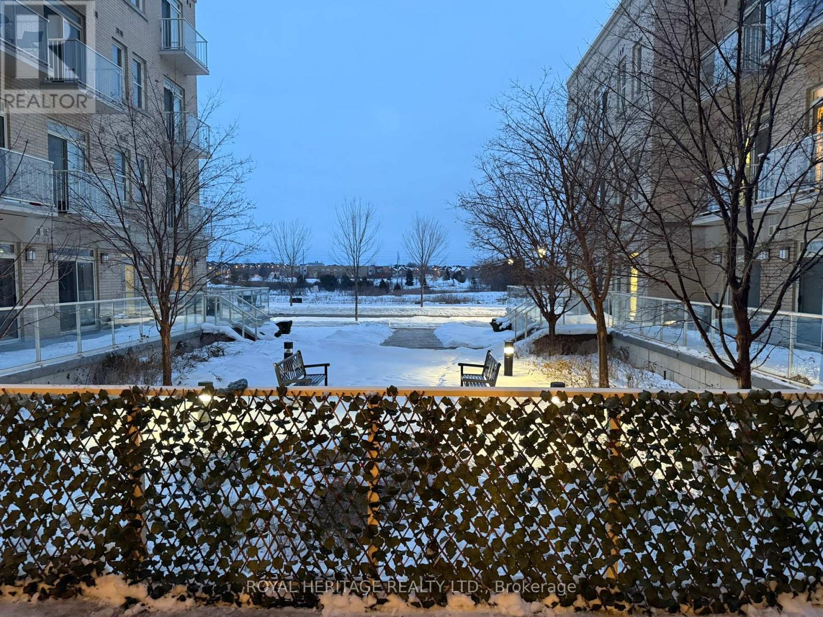 Discover a peaceful retreat in this beautifully maintained 4-storey boutique building - a rare main-floor suite that feels more like a private oasis than a condo. The moment you step inside, you're welcomed by 9-foot smooth ceilings and an open, airy layout that makes everyday living feel effortless. The open-concept kitchen is designed for both style and function, featuring granite countertops, an undermount sink, a modern backsplash, and seamless flow into the living area. Laminate flooring runs throughout, giving the space a clean, cohesive look. What truly sets this home apart is the massive 8 ft x 30 ft balcony - accessible through two sliding doors - overlooking serene greenspace and a tranquil pond. It's the kind of outdoor space that transforms your summer living: morning coffee in the sun, quiet reading in the afternoon, or unwinding in the evening with a peaceful view. The suite includes a spacious bedroom plus a separate den, perfect for working from home in comfort and privacy. Located just minutes from Highways 404 and 407, commuting is simple and convenient, while the surrounding neighborhoods offers everything you need close by. This is more than a place to live - it's a place to breathe, relax, and enjoy a setting that feels tucked away from the everyday rush. (42207260)