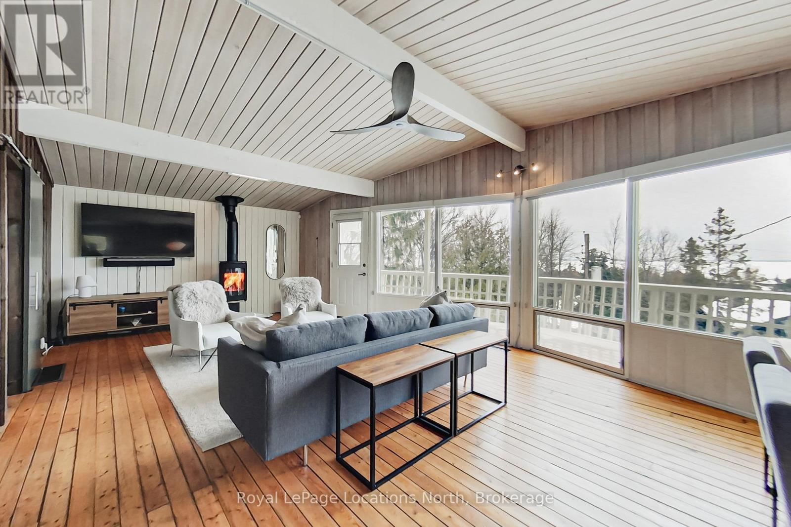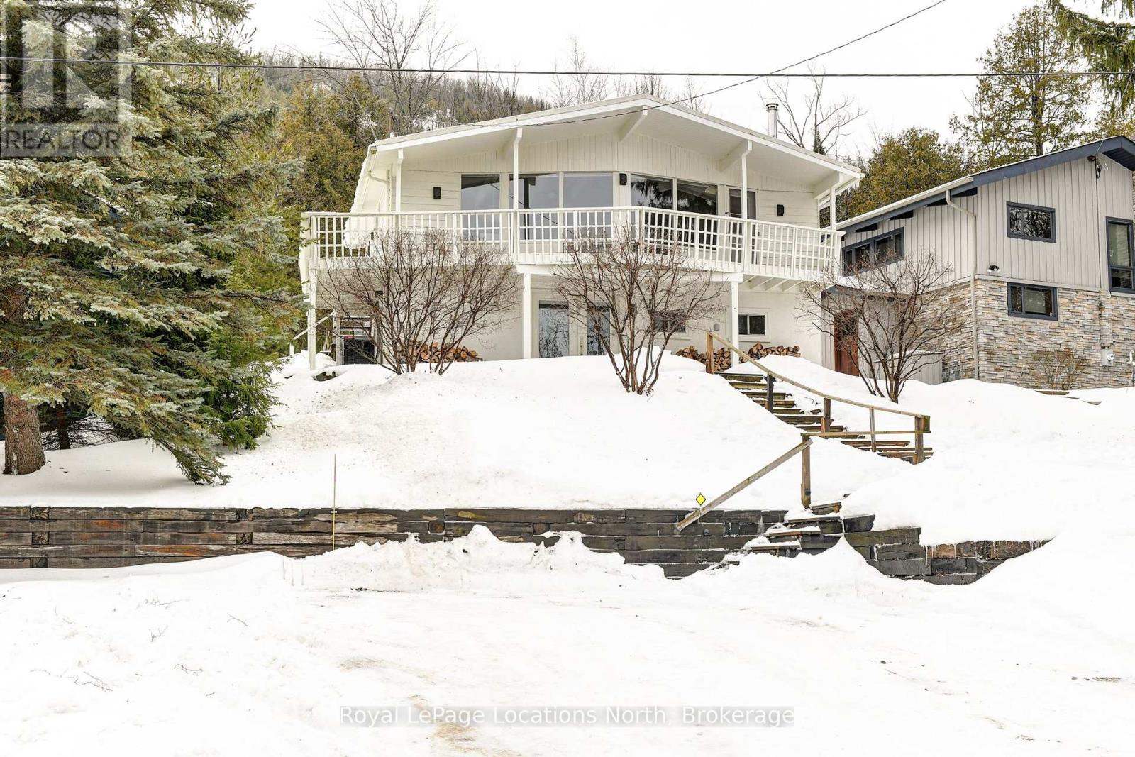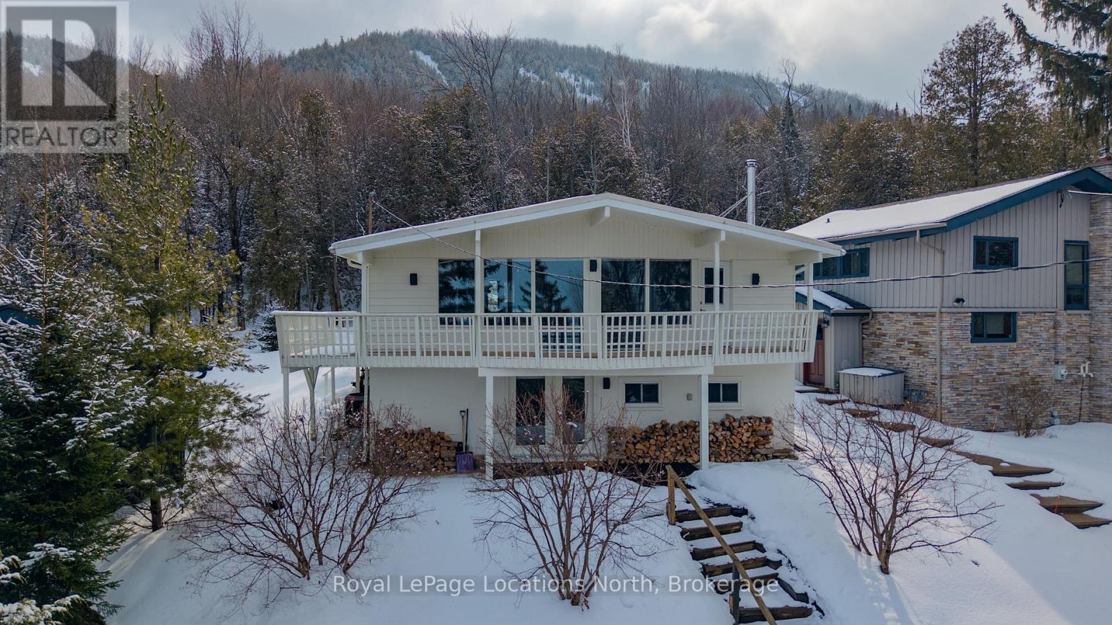 Georgian Peaks - True ski in ski out Chalet with Georgian Bay views. Renovated charming 3-bedroom 2-bathroom chalet with approx. 1,643 sq.ft. of living space. Cozy open concept design, wood burning fireplace, Kitchen with stainless appliances and quartz counters. Located on the upper road of Wensley with a wrap around deck, gorgeous views and privacy. New furnace and hot water tank 2026. Lower level family room is perfect for kids and guests. Park the car for the weekend and ski/hike right out your door. Located only minutes from Thornbury, Collingwood and all the area's amenities. (42207118)
