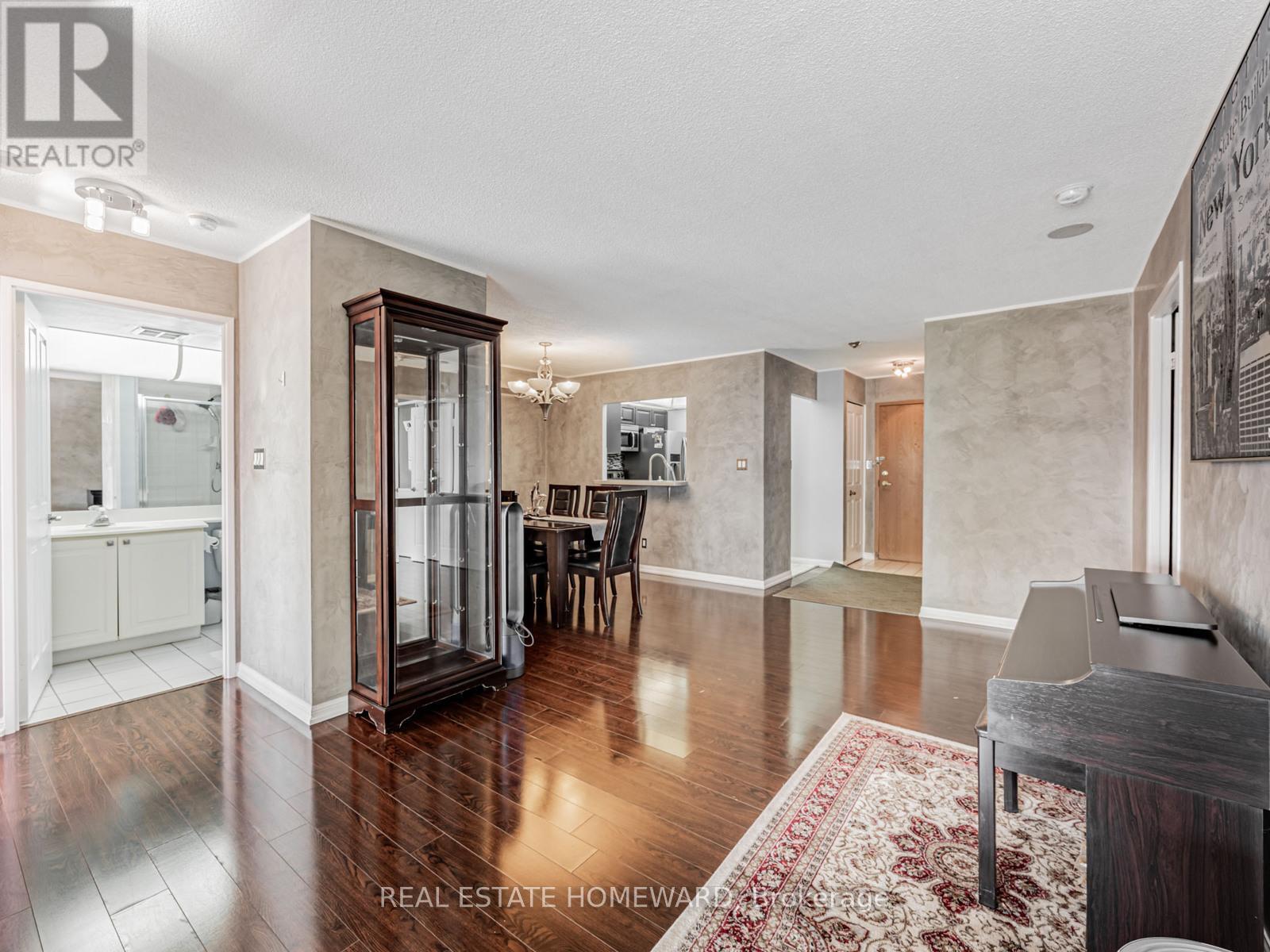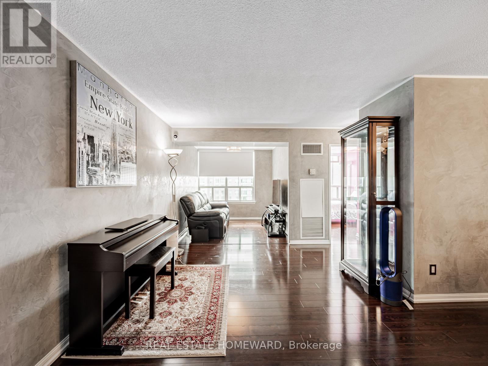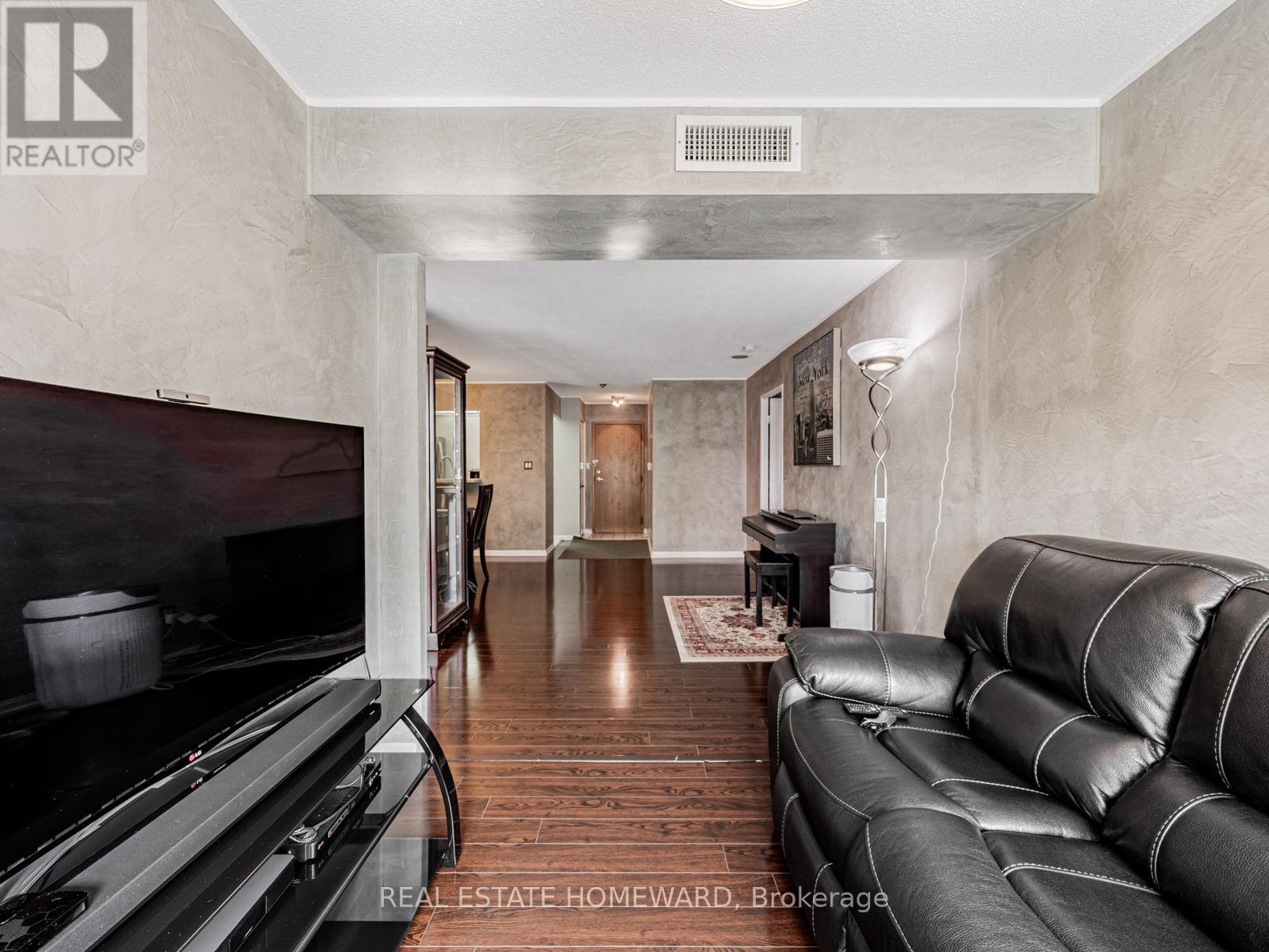SPACIOUS 2+1 BEDROOM, 2 BATHROOM Condo with PARKING*** Excellent split-bedroom layout with second ensuite bathroom + ample closet space in primary bedroom, hardwood floors throughout with custom professional "venetian stucco" wall design, ceramic tiled kitchen/bathrooms, updated kitchen counter with under-mount double-sink, stainless steel appliances, formal dining room area with plenty of space throughout to enjoy! EXCELLENT AMENITIES include swimming pool, gym, bowling, party/meeting room, security system/guard, visitor parking & more! ***(UTILITIES INCLUDED: HEAT, HYDRO & WATER)*** (42207245)