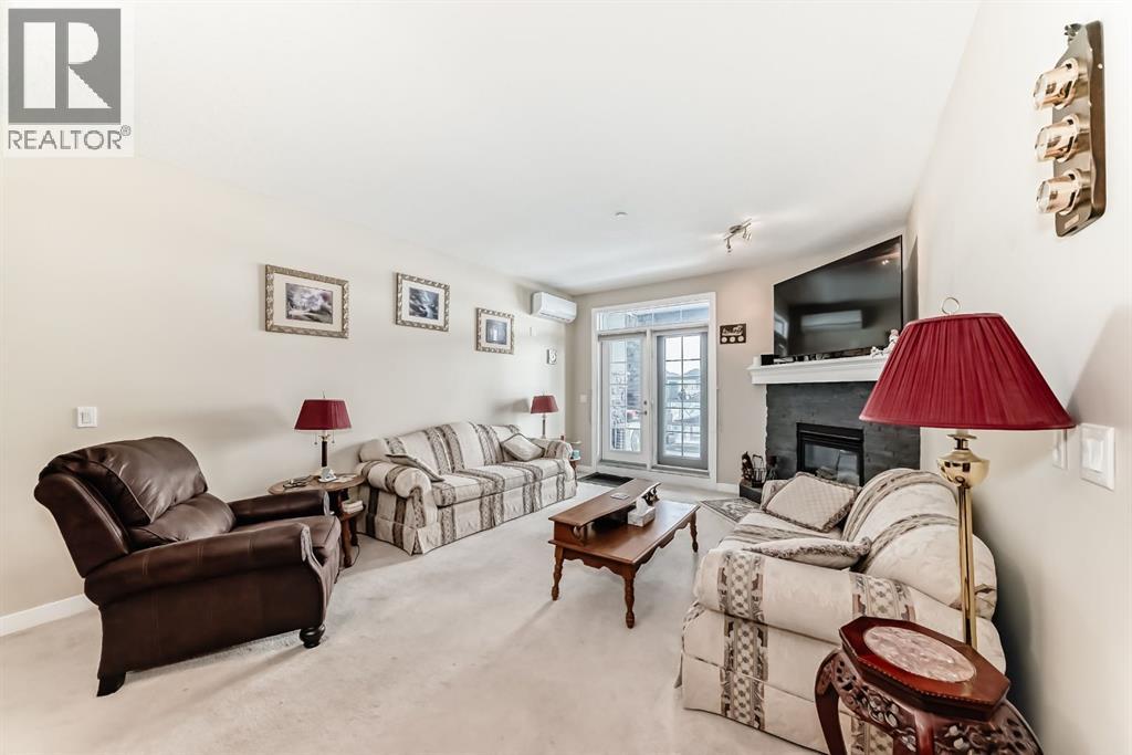 Opportunity like this doesn't come up often. Welcome to the Savana. This main floor 2 bedroom condo features 3 parking stalls!! The outdoor stall is right outside your patio for easy access, there is 2 underground parking and storage. Walking in you will notice the pride of ownership. This home has a generous tile entry with a double size closet. The open concept is bright and homey with a corner natural gas fireplace in the living room. The kitchen features many cupboard and lovely granite counters with tasteful backsplash. The laundry room is complete with a newer washer and dryer set. The primary bedroom has a walk in closet as well as a 3 piece ensuite and will accommodate king size furniture. There is another 4 piece main bath and lovely 2nd bedroom as well. Did I mention this home has inflow heating, Air conditioning and more. Don't let the condo fees scare you because they include all your bills except power and cable. Cats are allowed in this building, no dogs or exotic animals. Call your favourite agent to view today!! (31681450)