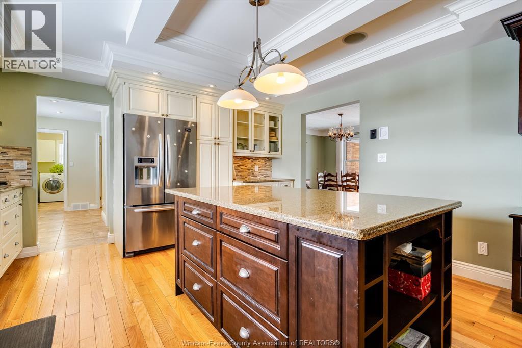 Welcome to a distinguished brick ranch that effortlessly blends elegance, comfort, and thoughtful design. Perfectly positioned on the outskirts of town with no rear neighbours, this exceptional residence offers rare privacy and a serene backdrop for everyday living. A charming covered front porch sets the tone, inviting you into a gracious foyer where gleaming hardwood floors extend throughout the main level. The interior showcases a beautifully balanced layout. At the heart of the home, a custom chef’s kitchen makes a striking impression with rich stone countertops, an expansive centre island, and a walk-in pantry. Seamlessly connected to the formal dining room, elegant living room, and a warm family room anchored by a fireplace, the space invites both grand and intimate gatherings. Three generously sized bedrooms and two exquisitely renovated bathrooms offer comfort, while main floor laundry enhances daily convenience. Outdoors, the private backyard features a substantial cement patio, creating an ideal setting for family enjoyment. Designed with accessibility in mind, the home offers wide hallways, a garage lift, and a stair lift providing easy access to the fully finished basement. The lower level extends the living space with a spacious family room and abundant storage. Recent upgrades, including a steel roof, updated windows, and a new furnace and air conditioning system, ensure peace of mind and modern efficiency. An expansive cement driveway accommodates up to eight vehicles in addition to the attached two-car garage, providing exceptional practicality without compromising curb appeal. This is a rare opportunity to own a meticulously maintained, luxury ranch that offers privacy, accessibility, and timeless appeal in one remarkable package. (55397055)