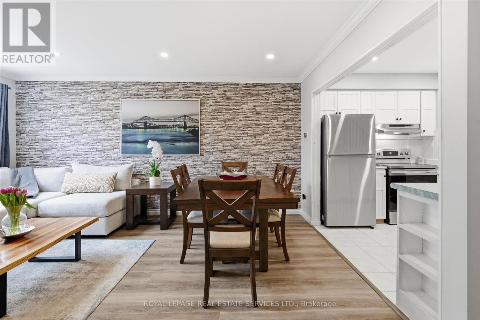 SOUGHT-AFTER END-UNIT TOWNHOME IN LIVINGSTONE LANE CONDOMINIUMS! QUIET DUNDAS ENCLAVE! OVER $40K SPENT IN RECENT UPGRADES! This desirable two-storey, three-bedroom end-unit townhome offers nearly 1,300 square feet of exceptionally well-maintained living space in a family-friendly setting. The sun-filled main level features an oversized living and dining area with a corner electric fireplace and a stunning feature wall. The kitchen offers an abundance of white cabinetry and stainless steel appliances, providing both style and functionality. Upstairs, the spacious primary bedroom boasts parquet flooring and a private four-piece ensuite. Two additional bedrooms and a four-piece main bathroom complete the upper level, offering comfortable accommodations for family or guests. The finished walkout basement further expands the living space with a generous family room featuring parquet flooring, a cozy gas stove, and sliding doors leading to the patio. A two-piece powder room and laundry room add to the home's practicality. Recent upgrades include new handrail, pickets, and Berber broadloom on staircases, Berber broadloom throughout the upper hallway, laminate flooring in living room and two bedrooms, a brand new furnace and central air conditioning unit, and astro turf in the backyard. The monthly condominium fee of $394.38 includes building insurance, exterior maintenance, common elements, parking, and water - delivering excellent value and peace of mind. Ideal for families, this location is within walking distance of Sir William Osler Elementary School, Dundas Valley Secondary School, and St. Bernadette Catholic Elementary School. You're also close to parks, hiking trails, Dundas Valley Conservation Area, and historic downtown Dundas. The perfect place to call home for families seeking space, convenience, and a welcoming neighbourhood setting. (certain exterior images have been digitally altered to depict summer conditions) (42208886)