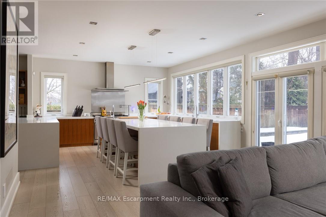 This completely renovated contemporary residence represents the pinnacle of modern design and sophisticated living in one of Oakville's most desirable locations of Old Oakville.Every detail of this 4 Bedroom | 4+1 Bathrooms | 4,819 Sq Ft Finished Living Space has been meticulously reimagined to deliver an unparalleled standard of quality and craftsmanship.The highly functional main floor plan centers around an exceptionally sleek kitchen open to the Great Room with gas fireplace and walk out to the resort style backyard and pool.The kitchen is outfitted with luxury high-end appliances, an oversized island seating eight, and an additional peninsula for casual entertaining in the bar area.Adjacent to the kitchen, is a walk in pantry with an additional dishwasher and fridge. Not to be missed is the impressive temperature-controlled wine room accommodates approx 1,000 bottles-a striking feature for the discerning entertainer.A versatile family room/main floor bedroom with ensuite which can be used as a principal bedroom or guest suite, laundry room, walk-in main closet for storage and access to oversized double car garage.The 2nd level principal suite is a private sanctuary featuring juliette balcony, gas fireplace, two walk-in closets and a spa-inspired ensuite with heated floors, walk-in shower, and a standalone soaking tub.Two additional spacious bedrooms each with their own ensuites complete the level. Not to be missed is the finished lower level room with added storage in the pantry and crawl space area. The backyard is an entertainer's paradise, showcasing a saltwater pool, two expansive patio areas, two gazebos with a gas fire table, and premium Dutch-imported artificial turf that remains lush year-round with zero maintenance.Ideally situated steps from Whole Foods Market, Oakville GO Train, for seamless transit connectivity,and the Oakville Trafalgar Community Centre this extraordinary property offers both refined luxury and everyday convenience.LUXURY CERTIFIED (42209175)