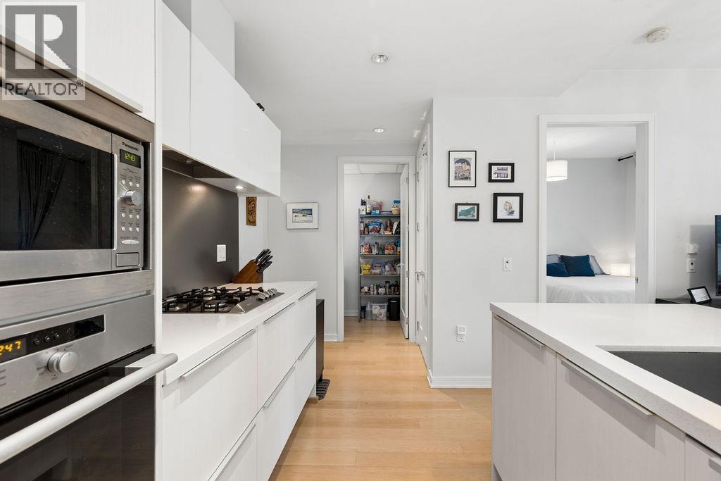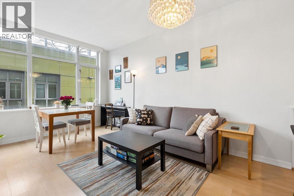 Welcome to your new home at The Brook! A well looked after building in the heart of the sought after Olympic Village. Steps away from cafes, restaurants, parks and the seawall, this spacious one bedroom condo features a flex space that can be used as a pantry, extra storage or a small home office and a quiet outdoor space with ample room for small plants and a cozy breakfast table for two. Finished with engineered hardwood floors, quartz countertops, a gas cooktop, integrated fridge, Miele appliances and in-suite laundry, this home offers great value to first time home buyers or downsizers. Residents have access to the gym in this building as well as the fabulous Gold Medal Club with an indoor pool, hot tub & fitness centre. Open house Friday Feb 27th 10am-12pm, Sat/Sun Feb 28/Mar 1 2-4pm. (32486537)