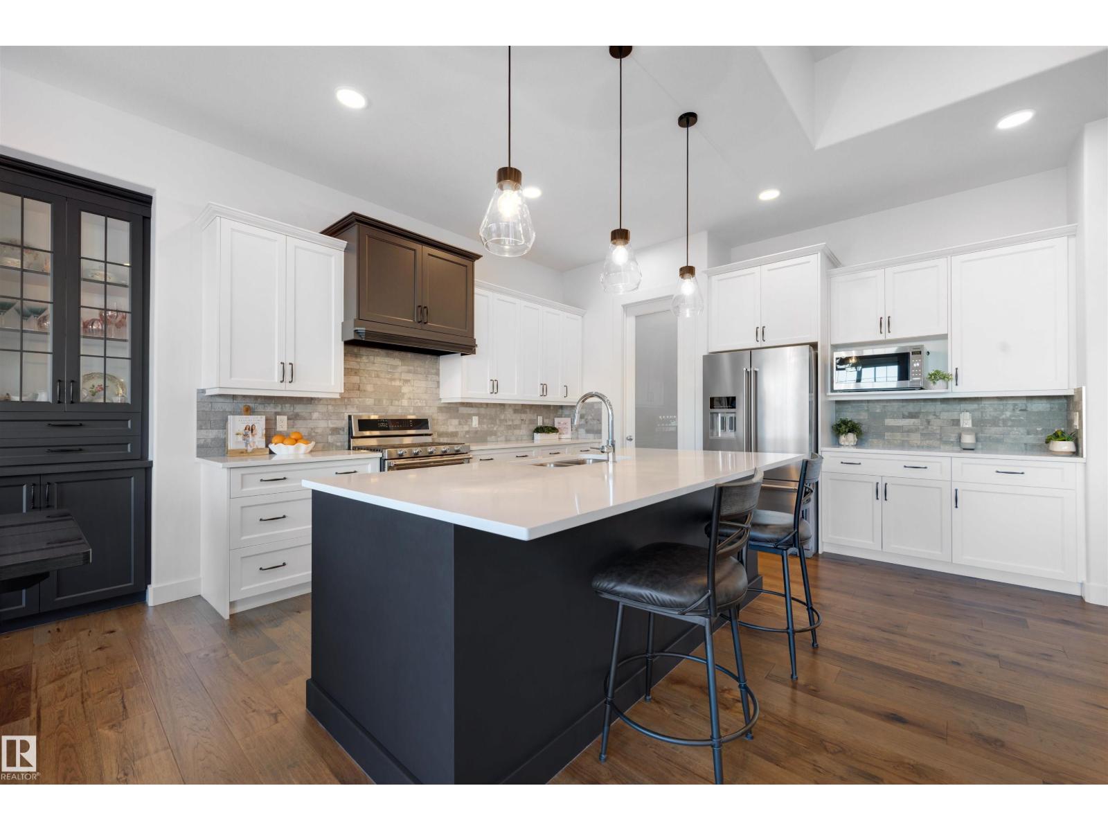 Welcome to this rare Executive Bungalow in Pristine Showhome Condition — with 3 Bedrooms, a Professionally Finished Basement, and an Oversized 23’ garage! Walk into your bright open concept living space with Hardwood Floors, 10’ Ceilings, Central Air Conditioning, and a gorgeous kitchen with Quartz Counters, Gas Stove and a Full Walk-Thru Pantry. Your master suite easily fits king-sized furniture, and has a dream 5pc ensuite plus large walk in closet! Enjoy the convenience of a main floor office and large full-sized main floor laundry room with sink! Your fully finished basement has 9’ ceilings, extra large windows and is home to a large family room, large wet bar or potential 2nd kitchen, another 5pc bathroom and two more bedrooms! The oversized 23’ garage can fit your large truck or SUV! Your low-maintenance backyard is fully fenced and has a great deck with glass railings! Enjoy life in one of the most exclusive and quiet streets in the neighbourhood — on a block filled with million-dollar dream homes! (33868254)