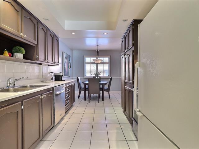Spacious 4-bedroom corner unit townhouse offering comfort, functionality, ideal layout for family living. large entry hall , open-concept living and dining area is bright and inviting, perfect for everyday living and entertaining. Enjoy a private backyard, basement level features a generously sized playroom that can easily serve as a family room, home office along with a separate laundry area for added convenience. This home also includes two indoor parking spaces with direct access to the garage. low condo fees. Ideally located minutes from shopping centers, public transportation, CLSC, parks, and an aquatic center +++ (43228991)