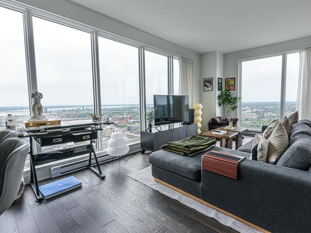 Vente sous contrôle de justice(voir addenda).Niché au 48e étage de la prestigieuse Tour des Canadiens 3, ce luxueux condo offre une vue panoramique à couper le souffle de plus de 221 degrés sur le fleuve Saint-Laurent et l'effervescence de la ville. Baigné de lumière naturelle, l'espace de vie ultra-lumineux est parfait pour un confort absolu. Ce condo comprend également deux chambres, chacune avec sa propre salle de bain attenante, ainsi qu'un stationnement intérieur et un espace de rangement. Les résidents ont accès à une gamme complète de commodités, incluant une salle d'exercice moderne, une piscine et une terrasse sur le toit, parfaits (52990059)