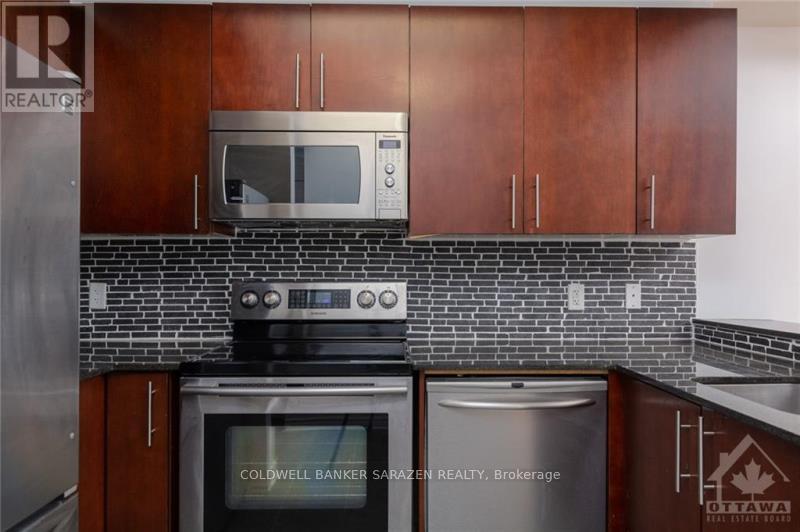 Modern 1Bed/1Bath Condo with Stunning Views in Downtown Ottawa! Welcome to this stylish 21st-floor condo offering breathtaking panoramic views of the Gatineau Hills, Parliament, and downtown skyline. Ideally located just steps from Ottawa University, the Rideau Centre, and the ByWard Market. This bright and airy unit features 9-foot ceilings, an open-concept layout, and a dedicated office nook, perfect for working from home. The sleek kitchen boasts rich dark cabinetry, stainless steel appliances, a ceramic-tiled floor, and a generous peninsula for extra prep space. The living area, with hardwood flooring and floor-to-ceiling windows, opens onto a private balcony with incredible city views. The spacious bedroom includes soft carpeting and large windows, while the updated 4-piece bathroom features granite countertops and a glass-enclosed tub/shower. Enjoy premium amenities at Claridge Plaza: 24/7 security, indoor pool, sauna, two gyms, two rooftop patios, library, theatre/media room, and more. Don't miss your chance to live in a high-quality condo in one of Ottawa's most vibrant neighborhoods! (42209637)
