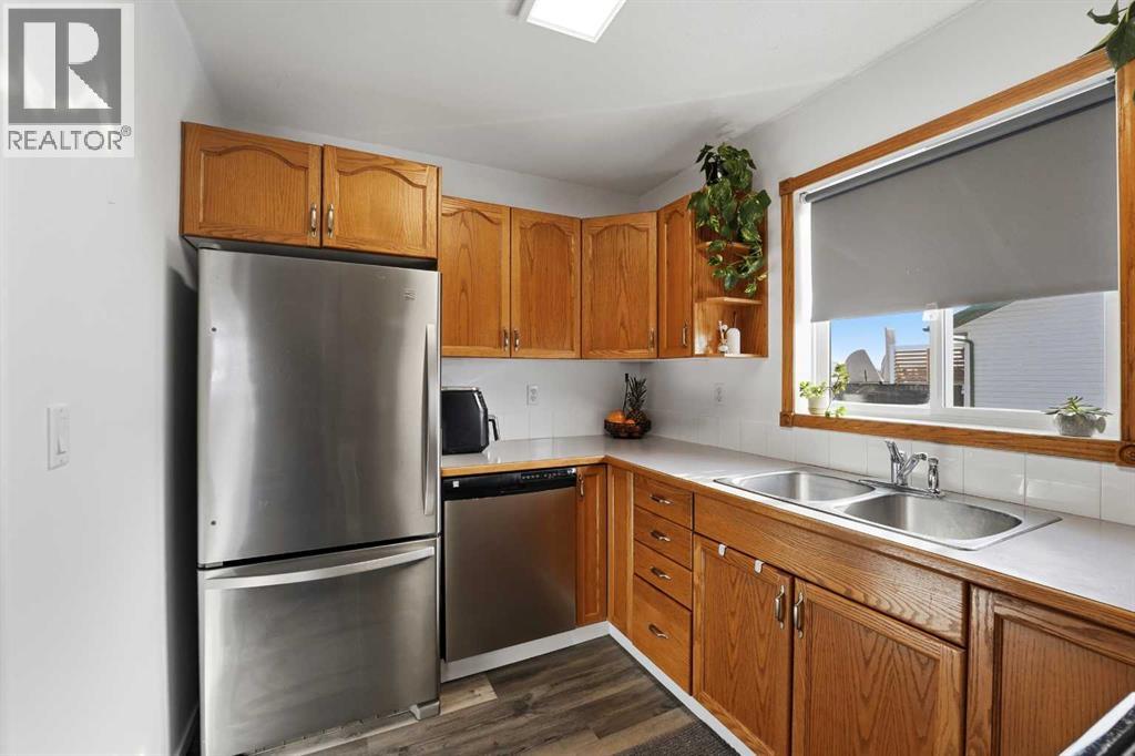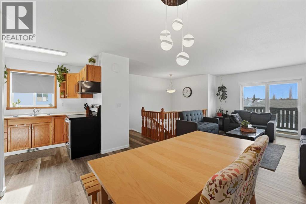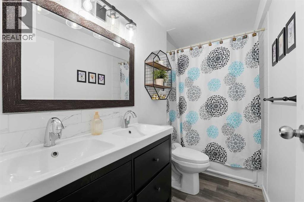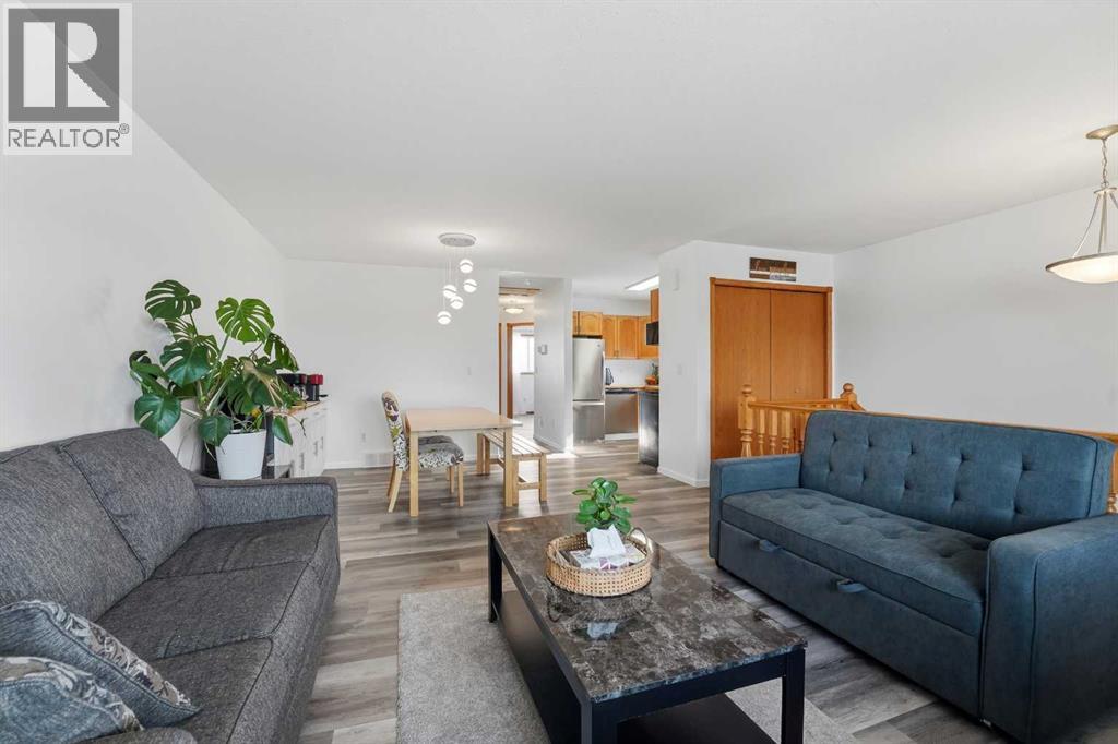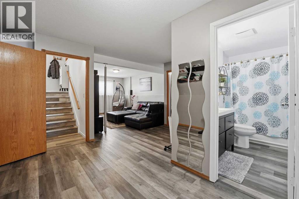 A fully developed half duplex with upgrades!The curb appeal is accented by the front deck and paved front driveway. The entryway greets you with vinyl plank flooring that carries through up the stairs and throughout the open style main floor layout. Natural light floods through the newer vinyl patio doors in the living room that lead to the front deck. The nice sized eating has upgraded lighting and adjoins to the kitchen that features oak cabinets, stainless steel appliances and a window above the sink. There are two bedrooms on the main floor and a 4 piece bathroom that was renovated last year with a furniture style vanity, new toilet and automatic fan. The basement has a large family room, 2 bedrooms (one doesn't have a closet) and a renovated 5 piece bathroom featuring double sinks & a tiled tub/shower. There is an oversized yard that is landscaped and includes the shed. Renovations include: hot water tank 2016, basement vinyl plank 2020, upstairs vinyl plank 2025, front door and patio door 2025, upstairs bathroom 2025 and the basement bathroom 2020. (31682341)