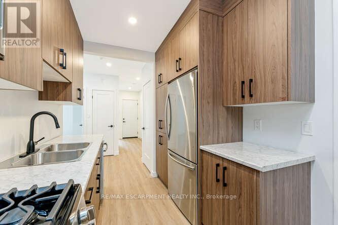 Offering a stunning, spacious and sun-filled 2-bedroom, 1-bath unit for lease. Features a contemporary galley kitchen with stainless steel appliances and gas range, ensuite laundry, high ceilings with pot lights, large windows, light flooring, and a beautifully updated bathroom. No parking. Conveniently located steps to transit and within walking distance to Hamilton GO, hospitals, and a recreation centre. Gas and hydro are separately metered and not included. (42209846)