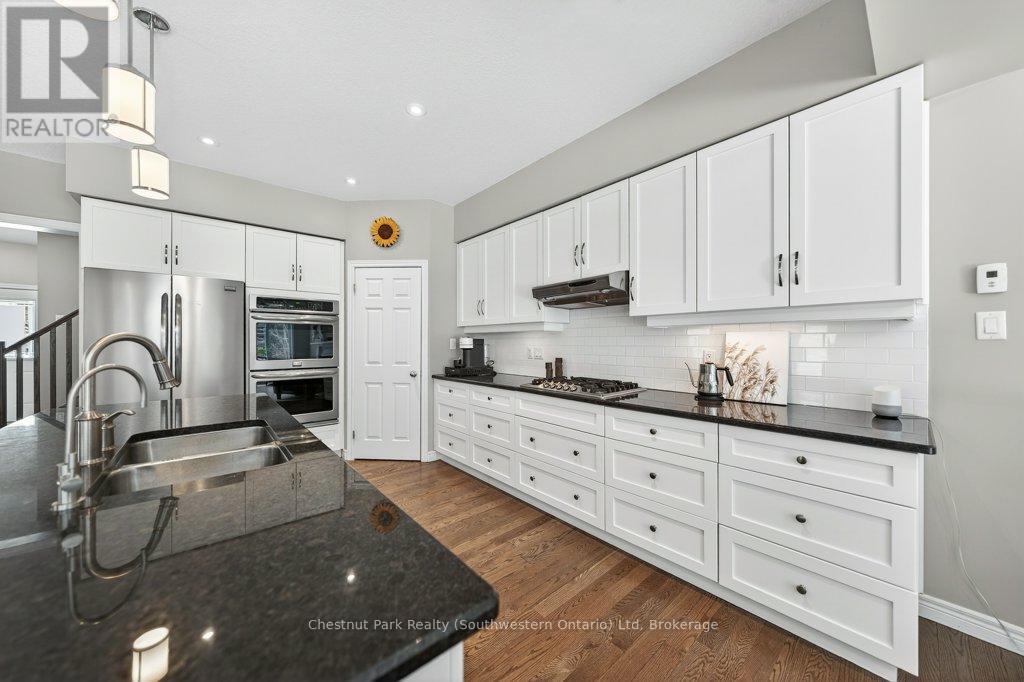 In a market where space is the new currency, 22 Rooke Court is the gold standard. Tucked away on a quiet, kid-safe court and sitting on a pie-shaped lot, this home is a strategic masterclass. It widens as you go, providing a private, sprawling backyard that backs onto protected greenery. With 9-foot ceilings and a completely carpet-free main floor, this layout was designed for high-impact living. The Chef's Kitchen is the heart of the home, we're talking a massive social island, wall ovens, a gas cooktop, and a walk-in pantry to house the snacks. The Entertaining Hub is the dining area that easily seats 10 and flows into a living room anchored by a cozy gas fireplace. Step out from the living room onto your upper sunset deck for absolute peace and a lot of nature. The second floor is all about the "Wind Down." A dedicated family room is perfect for cinematic marathons, a massive suite featuring a 5-piece "spa-at-home" ensuite with a deep soak tub and a sleek glass shower, two more generous bedrooms and-the ultimate convenience-upper-level laundry, Because you have better things to do than carry baskets down the stairs. The "Secret Weapon" is the registered 1-bedroom apartment with a full walkout to the backyard. It's bright, it's open-concept, and it has its own separate laundry and 3-piece bath - perfect for parents or adult children or use the legal rental income to offset your lifestyle. Because of the premium pie-shaped lot, your backyard feels like a private park. While you're sitting in the hot tub or swimming in the above-ground pool, you aren't looking at neighbors-you're looking at protected greenspace and listening to the birds. It's the cottage life, without the three-hour drive. Minutes from Costco, top-rated schools, and shops - you get the privacy of the woods with the proximity of the city. Legal income suite. A sprawling pie-shaped lot. 22 Rooke Court isn't just a home-it's an income-generating sanctuary. (42210023)
