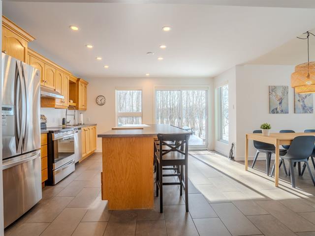 Superbe maison bien entretenue sur les rives de la rivière Saint-François (), offrant paix, intimité et vue incroyable et à seulement 15 minutes du Centre-Ville. Entouré d'arbres, elle offre un RDC lumineux avec plancher chauffant, garde manger walk-in, îlot central avec électricité, salon avec fenestration jusqu'au sol et salle d'eau. Au 2e étage, vous allez retrouver une spacieuse chambre des maîtres avec walk-in, salle de bain privée et puits de lumière. Le sous-sol est aménagé avec 2 chambres, une salle familiale et une salle de bain complète. Terrain boisé, dernière maison de la rue. À visiter ! (49056053)