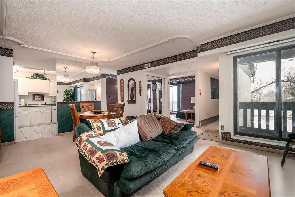 1E//Winnipeg/S/S 25/2. Offers Anytime after OH on Sunday 01/03 4pm. Welcome to Tuxedo Village! This well-designed second-floor condo features 2 bedrooms and 2 bathrooms with a layout that makes everyday living comfortable and convenient.The bright kitchen connects effortlessly to the spacious living and dining area, complete with a classic brick fireplace (Not Usable) and patio doors opening to one of two private balconies, ideal for morning coffee or evening downtime. A separate family room offers extra flexibility for a TV space, office, or hobby area, and also provides access to the second balcony.The generously sized primary bedroom easily accommodates a king-sized bed and workspace, and includes a 2-piece ensuite, in-suite laundry, and added storage. A second bedroom and full 4-piece bathroom round out the suite, perfect for guests, family, or a home office.Enjoy access to the outdoor pool, community garden boxes, and the ease of condo living with no snow shovelling or grass cutting. Two parking stalls complete the package. (231997453)
