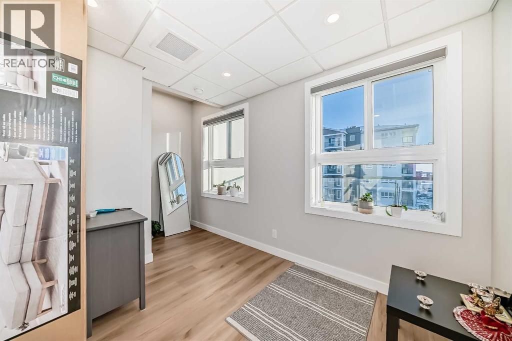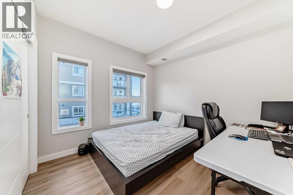 | 3 BEDS | 2 BATHS | END UNIT | BALCONY + WRAP AROUND ROOFTOP PATIO | UNDERGROUND PARKING | Welcome to this bright and open concept end unit townhome located in the community of Skyview. The main level features a modern kitchen complete with stainless steel appliances, quartz countertops, and a matching island that flows seamlessly into the dining and living areas. A door leads to the first balcony, perfect for enjoying your morning coffee or relaxing outdoors. This level also offers two good-sized bedrooms and a full 4-piece bathroom. Upstairs, a spacious bonus room provides additional living space and opens onto the large wrap around rooftop patio, ideal for entertaining or enjoying the outdoors. With no neighbours above, the primary bedroom offers added privacy and features its own 3-piece ensuite, a generous closet, and direct access to a secondary private entrance to the unit, offering additional convenience and flexibility. Enjoy peace of mind with condo fees that include heat, water, snow removal, and more. The home also comes with a heated underground parking stall, ample visitor parking, and dedicated bicycle storage. Conveniently located close to schools, shopping, Costco, the airport, and major roadways for easy commute. Do not miss this opportunity. Call your favourite agent to book a showing today. (31682316)