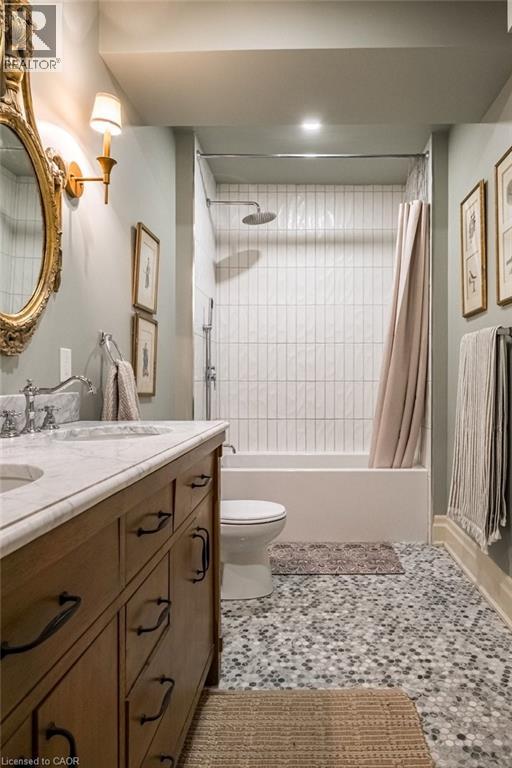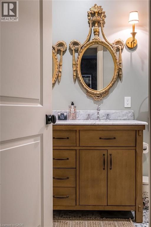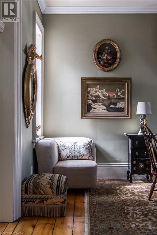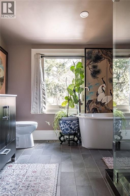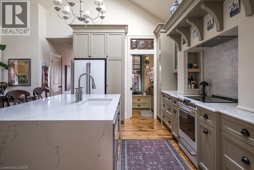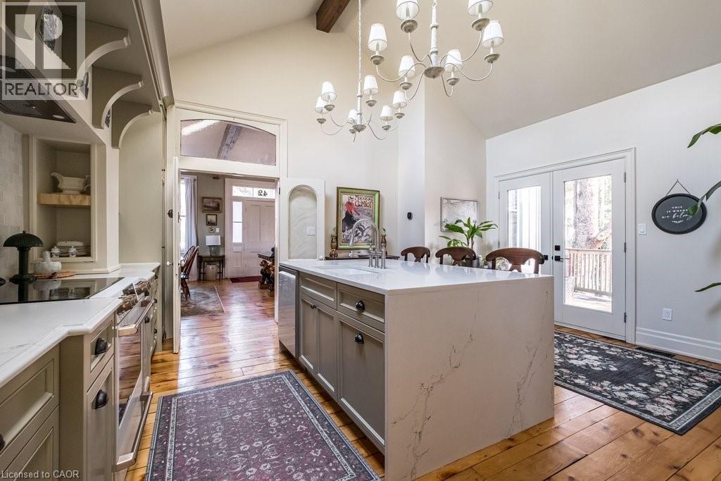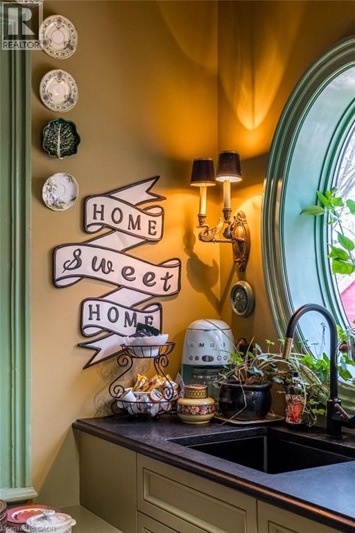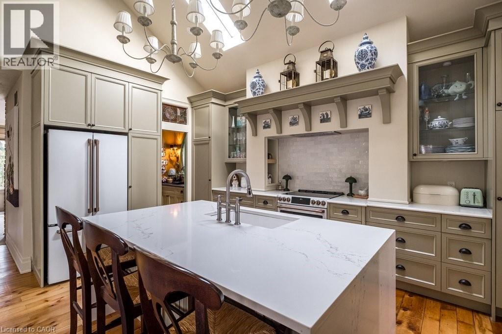 Dundas Dream. This circa 1880 character cottage, located in the heart of the Cross-Melville heritage district, is walkable to everything. Storybook curb appeal with beautiful perennial landscaping is unassuming from street level with a two full stories in the rear. Private forest on a 72' double wide lot, featuring a sunken garden and inground, heated saltwater pool surrounded by lush ferns, hostas, peonies, rose buses, hydrangeas and Japanese grasses. This tardis of a home is much larger than it appears with over 2,500 sqft of finished living space. Professionally renovated to the studs in 2023 to reimage the layout and living space. New HVAC, wiring, footings, support beams - everything! Unique reverse bungalow layout with main level living and lower garden level bedrooms, all above grade. 4 beds and 4 baths (2 half). The primary has jack and jill 5-piece bath access and a large WIC. One bedroom has custom built-ins with a closet and desk. The remaining two bedrooms share a walk in closet in their own wing. Additional storage via a large custom hallway built-in featuring double closets and a bench with hooks. There's even secret storage under the newly constructed, heritage style, staircase. This home is not to be missed. Loads of charm and character from rustic pine plank floors, salvaged brick floors from the old Grafton building, antique mantel with ornate cast iron insert, beamed ceilings, matching regency chandeliers imported from Chicago, and so much more. Brand new kitchen with quartz countertops, 14ft vaulted ceilings, walk-in pantry with bar sink, and garden doors to a private, forested deck. Main-level family room has a gas line ready fireplace and access to a beautiful 5-piece bath with full glass shower and standalone tub. Separate area for future built-ins. Could easily be converted to a second/alt primary. (70200472)