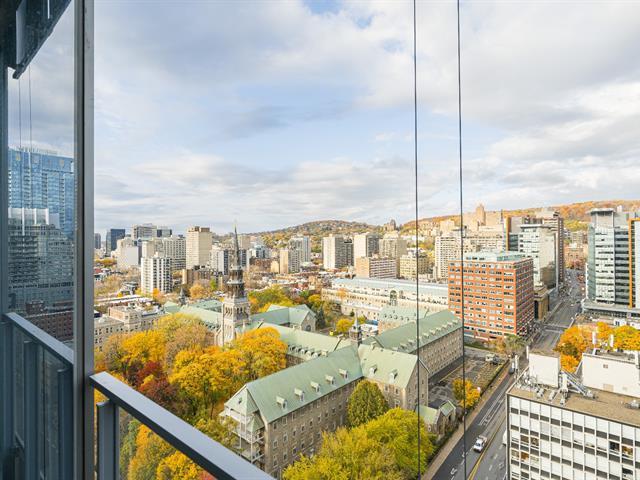Welcome to the epitome of urban living at the QuinzeCent building in Downtown Montreal. 20th storey 1 bedroom condo, northwest facing with floor to ceiling windows, will allow an abundance of natural light and great views of Mont-Royal. Stylish finishings and high-end construction materials throughout. Fridge, Stove, Dishwasher, washer/dryer, microwave. Close to all services and amenities, universities, Metro station, public transportation, shopping centers and much more. World-class amenities including: 24H Security, indoor pool, huge fitness facility and third floor exterior courtyard. Turn key, must see! (40157019)