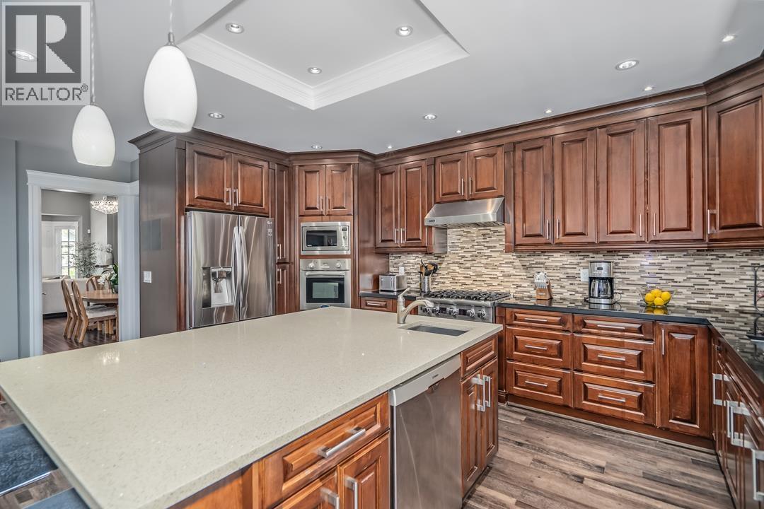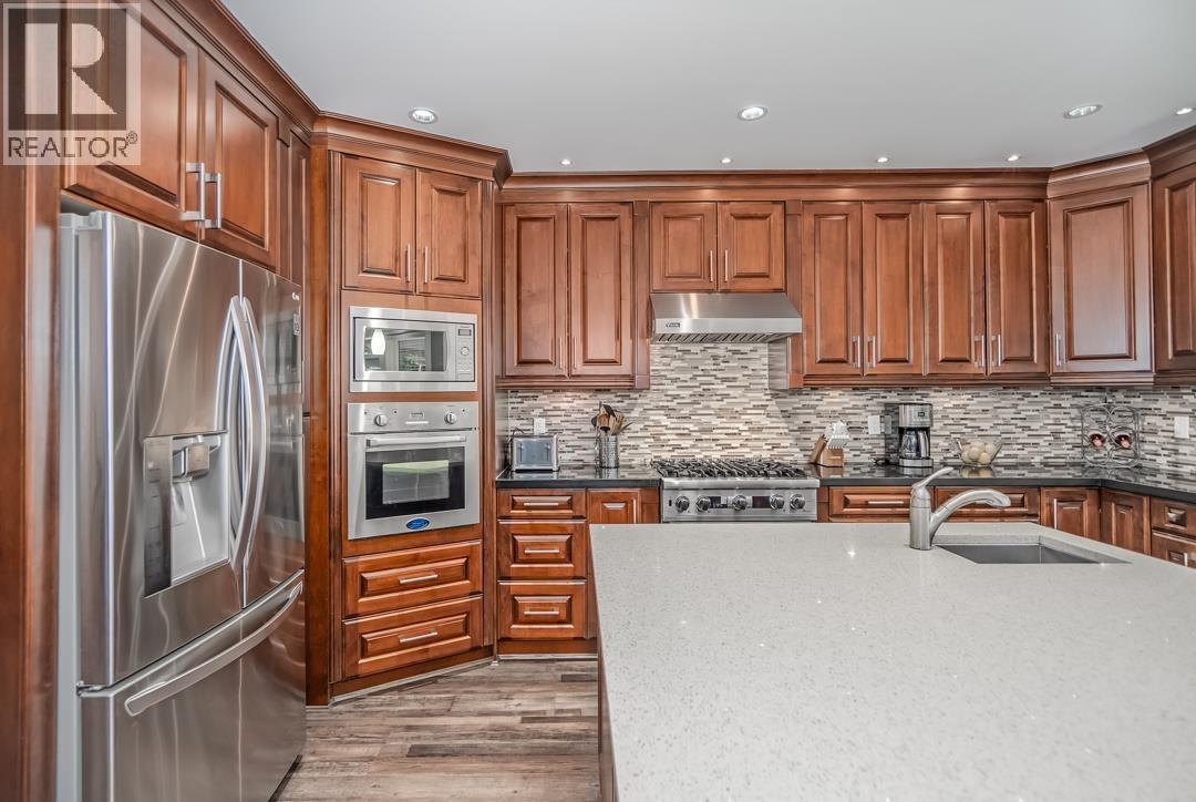 An original-owner custom built home where craftsmanship and care remain evident throughout. In a premier neighbourhood, 10 min walk to school, steps to VCR Golf Club. 7 Bed / 8 Bath with 3 kitchens. Elegant interior feat. coffered ceilings, crown mouldings, wood flrs & German Euroline windows. Main: bed/office w/full bath, liv rm, fam rm, powder rm, gourmet kitch w/cherry cabinets, granite/quartz, gas range, W/I pantry. Upper: 3 beds all w/ens & W/I closets; primary with dbl shower & Jacuzzi. Lower: flex rm/gym + 2-pc bath, legal 2-bed suite + 1-bed in-law. Radiant heat throughout, A/C up, Squamish granite exterior, brick pavers driveway, cedar soffits.