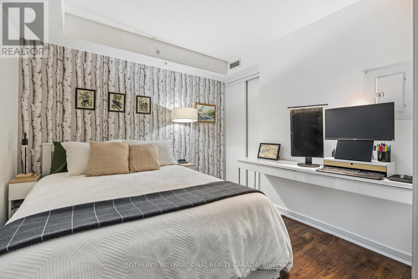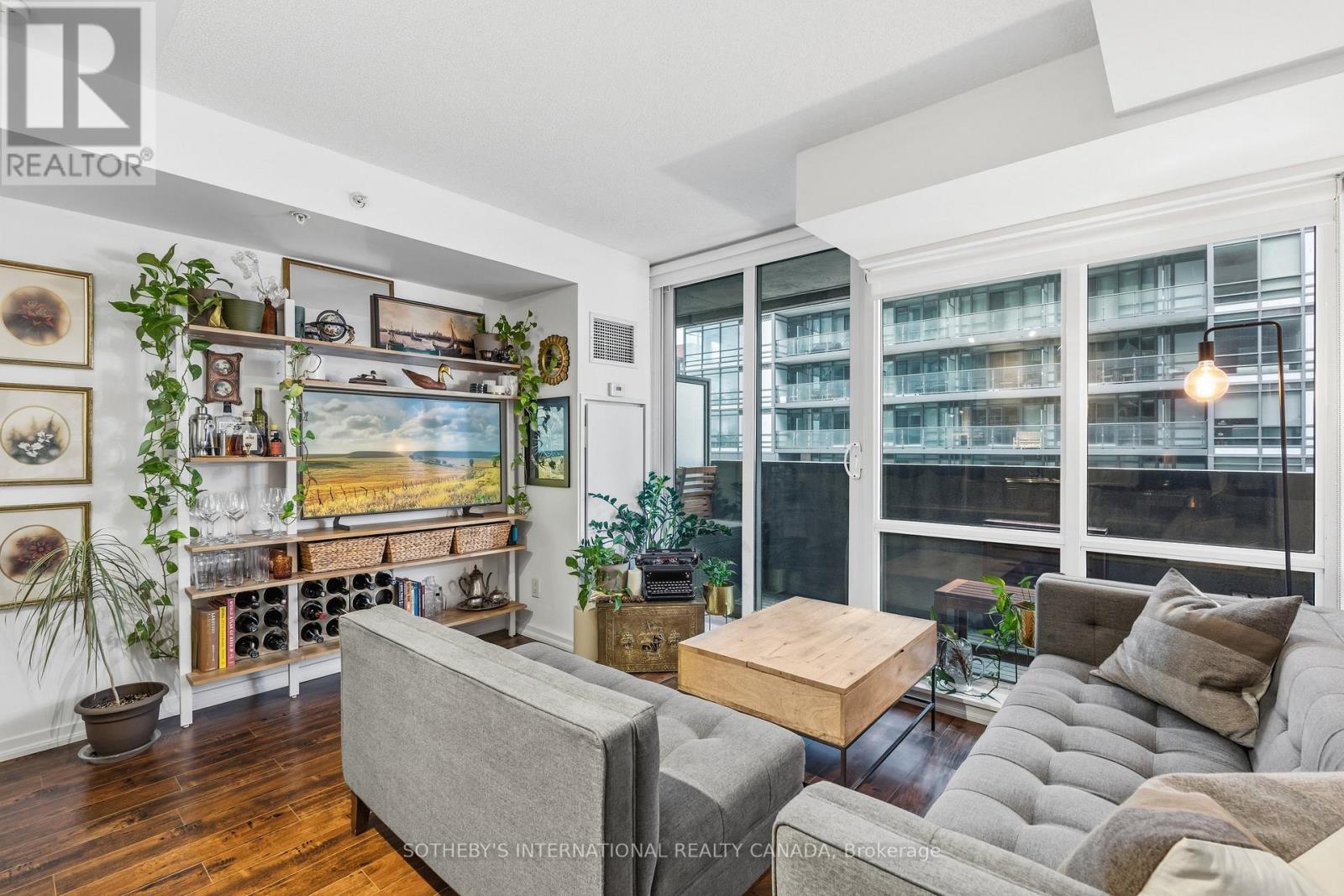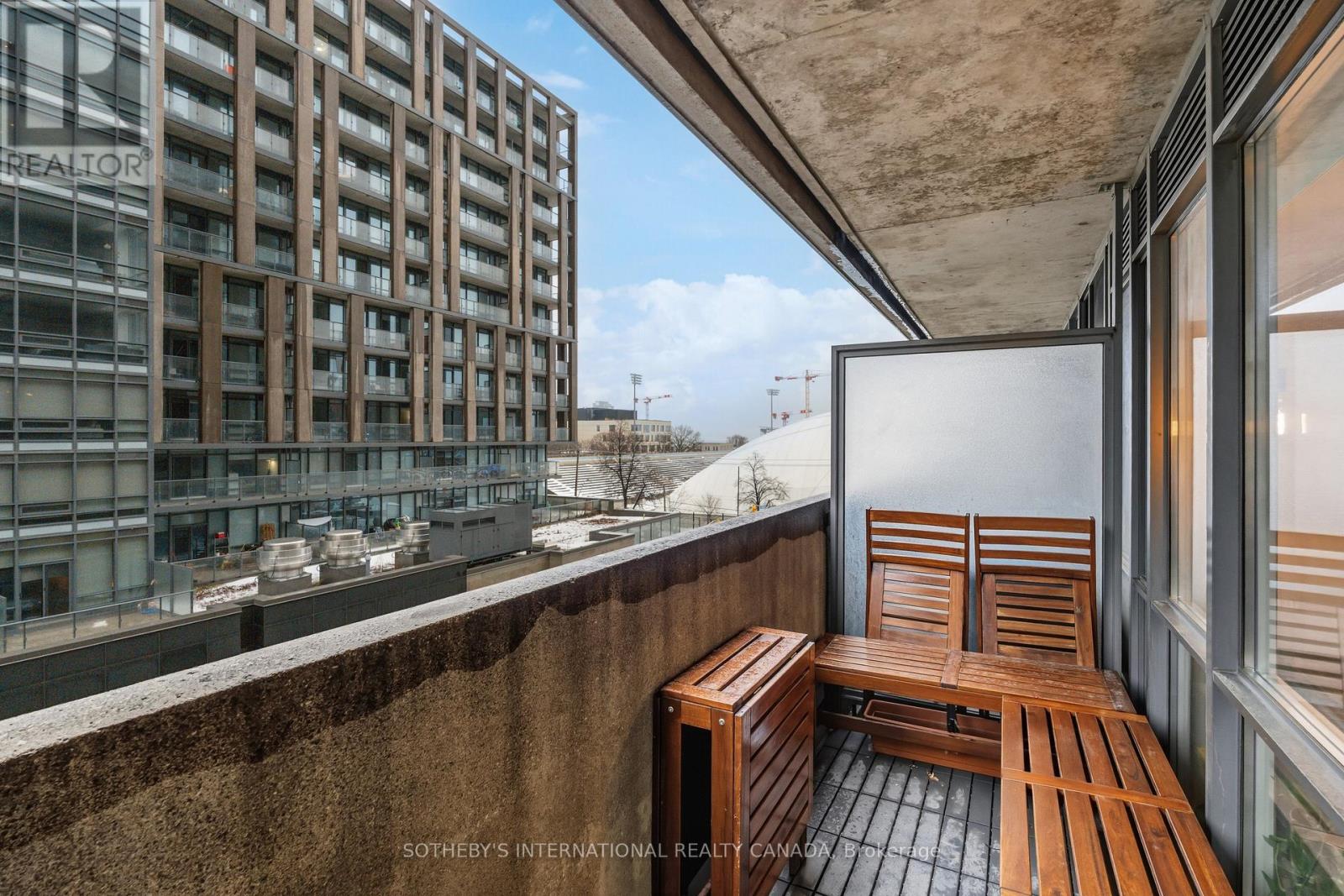 Bright and efficiently designed one-bedroom condo in a prime urban location, offering an exceptional layout that maximizes every square foot. Floor-to-ceiling windows bathe the space in natural light, creating an open and airy feel. The thoughtfully planned kitchen features sleek countertops, stainless steel appliances, ample cabinetry, and a functional workspace that flows seamlessly into the living and dining area. Laminate flooring runs throughout, leading to sliding doors that open onto a private balcony - the perfect extension of your living space for morning coffee or evening relaxation. The separate bedroom provides privacy and generous closet space, while the contemporary 4-pc bath offers clean finishes and practical design. In-suite laundry and smart storage solutions enhance day-to-day convenience. Low maintenance fees and a well-managed building support long-term value and peace of mind. Residents benefit from an impressive suite of amenities. Maintain your routine in the on-site fitness centre and yoga studio. The party room is perfect for hosting gatherings of large sizes while the cozy residents' library offers a quiet space to read or work. A beautifully designed rooftop patio provides an inviting outdoor escape. For added convenience, the building features a fully furnished and affordable guest suite ideal for visiting family and friends - along with complimentary bike parking for active, city-focused lifestyles. Located in a highly sought-after neighbourhood, you're just steps to top restaurants, cafés, grocery stores, fitness studios, and transit, making commuting effortless and city living seamless. At the foot of the building, you'll find Canadian Tire, Longo's, and Structube. Enjoy convenient transit connections along King and Dufferin, as well as easy access to Exhibition GO Station for seamless travel out of the city. An outstanding opportunity for first-time buyers, investors, or professionals seeking a stylish, low-maintenance home. (42210822)