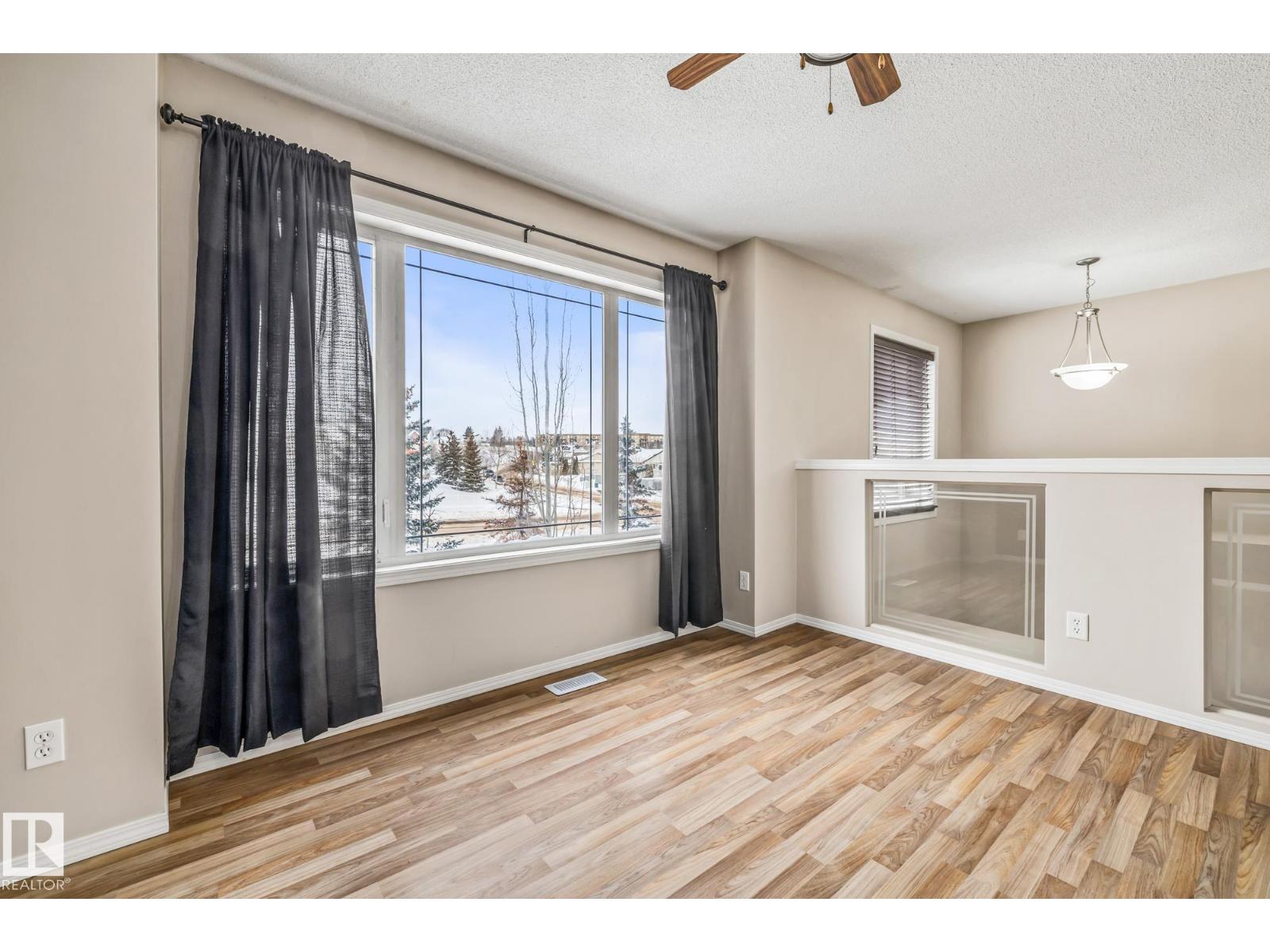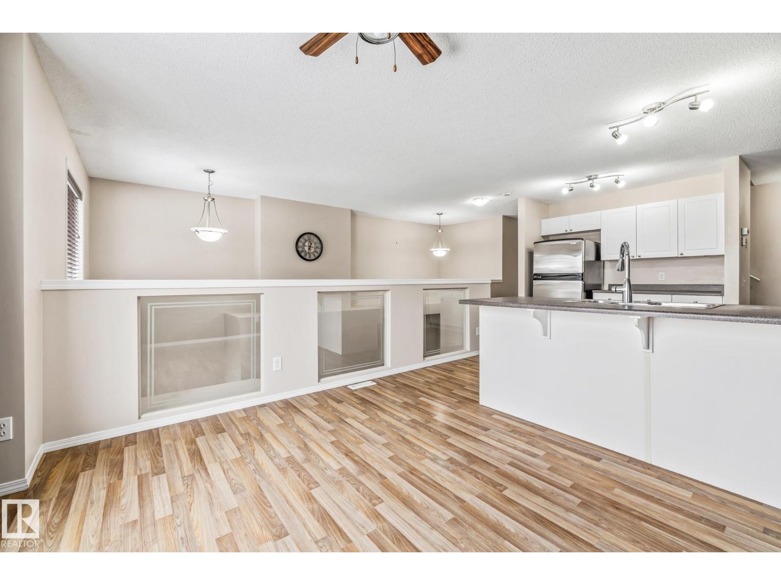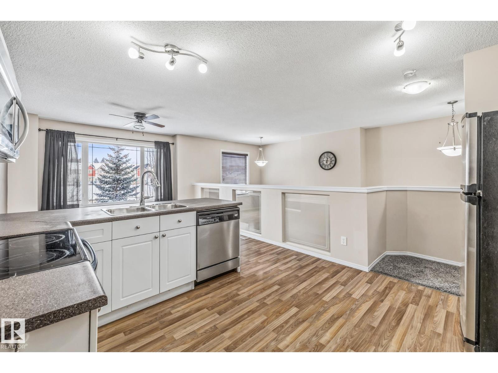 Just steps from HERMITAGE PARK and Edmonton’s RIVER VALLEY, this spacious 2 bed, 2.5 bath townhome with LOW CONDO FEES offers over 1,600 sq ft of living space! A grand two-storey entryway with convenient 2-piece bath leads into an expansive living room, perfect for relaxing or entertaining. The bright upper level features a loft-style dining area with large picture window and kitchen with stainless steel appliances and ample counter space. Upstairs you’ll find a primary suite with walk-in closet & ensuite, plus a second generous sized bedroom and full bath. Located across from green space and a playground, and minutes from off leash areas, scenic trails, Yellowhead Trail, and Anthony Henday. Complete with an oversized single attached garage and driveway, plus nearby transit and visitor parking. An excellent opportunity for first-time home buyers, professionals, or investors seeking space and convenience. UPDATES include: roof & insulation (2021), fresh paint (2026), furnace & duct cleaning (2026) (33869287)
