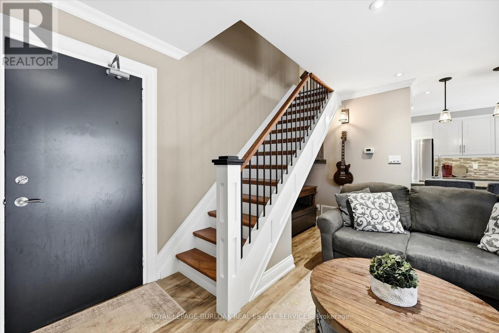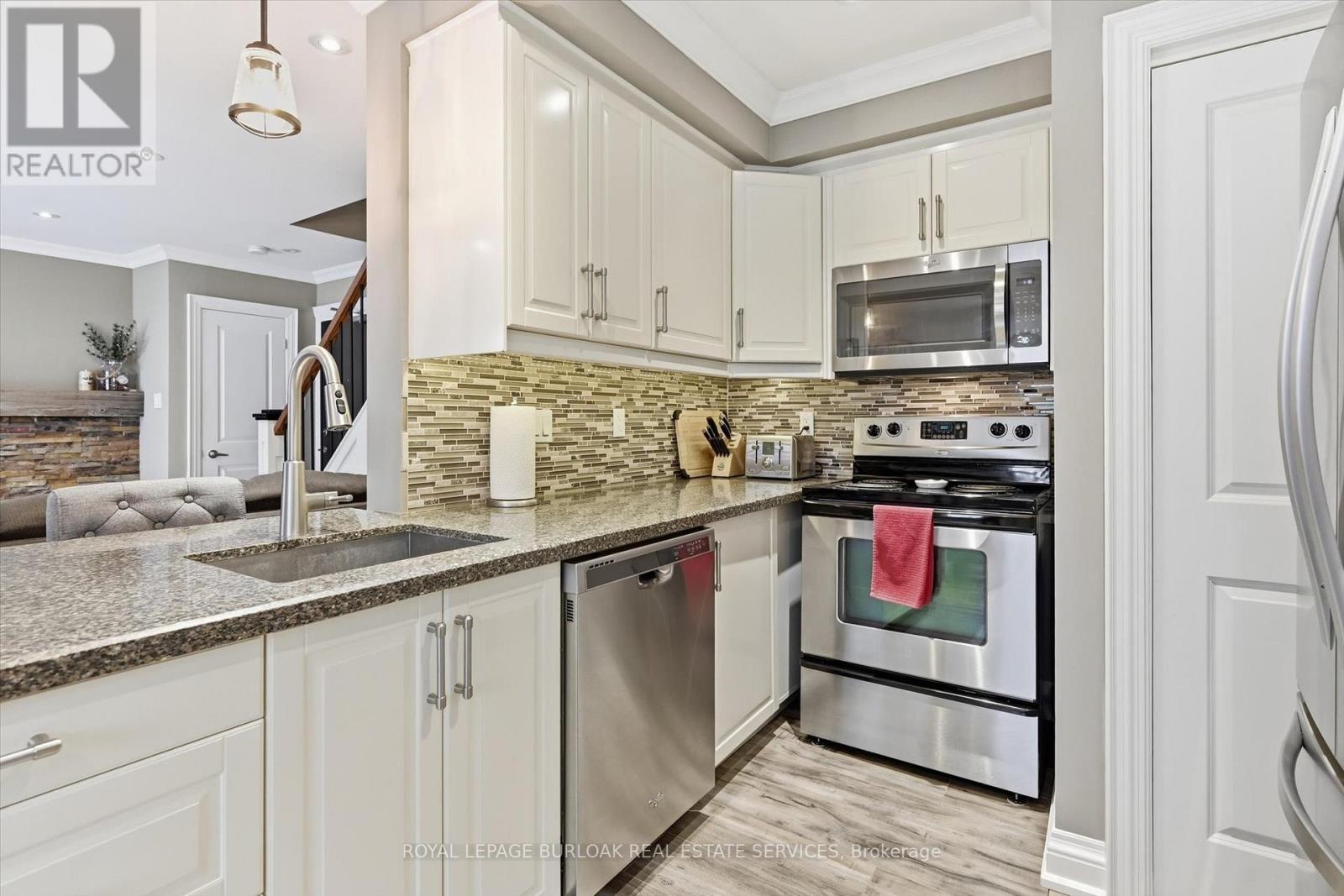 Spacious 2 bedroom townhome located in desirable south Burlington. Perfect for for first time home buyers, professionals, and downsizers. This home has been recently renovated to maximize living space and comfort. The entrance welcomes you to a bright and inviting main floor with cozy accents. The Living room features a decorative brick wall complete with electric fireplace and beam mantel. The Kitchen features plenty of storage with quartz counters and stainless steel appliances. Finished space under the stairs offers potential for home office or reading nook. A separate dining area is perfect for family dinners or entertaining. Patio doors provide walk-out access to a private fenced backyard. The second level features two generous bedrooms filled with natural light, an updated 4-piece bathroom, and a separate laundry/storage room with brand new washer/dryer unit. Low-maintenance living - condo fees include water, landscaping of common areas, and snow removal. Well maintained building has separate laundry room for owners and includes visitor parking. Incredible location close to the lake, Centennial trail, downtown, highways, shopping and public transit. Ready to move in! (42211318)