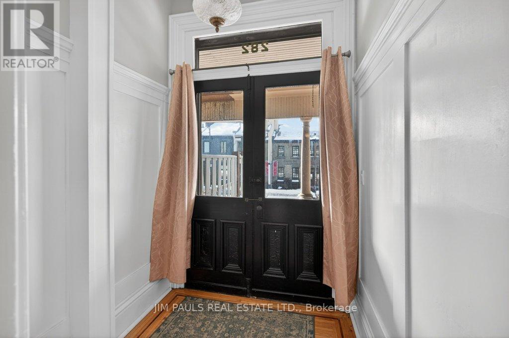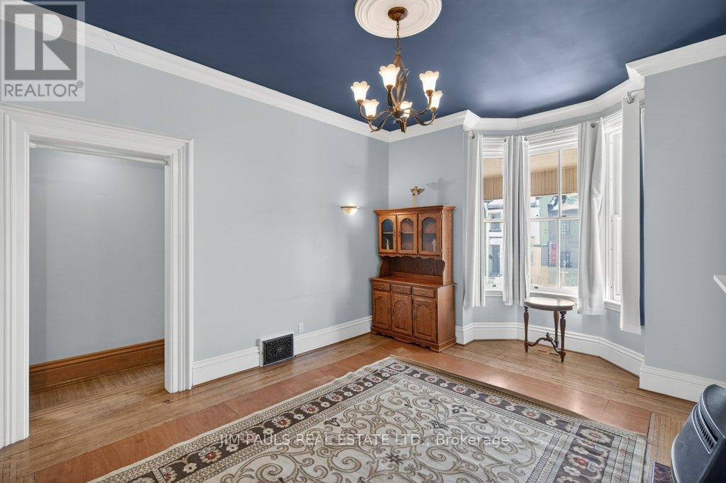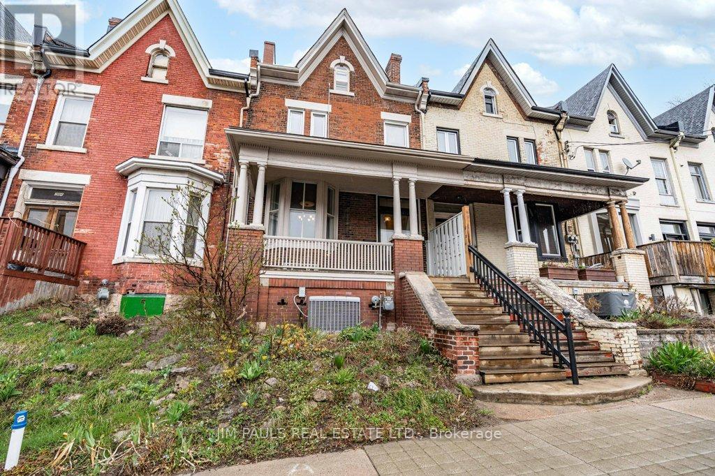 Charming 1895 Victorian Rowhouse steps from Hess Village. Step back in time while enjoying modern comforts in this character-rich home. Featuring high ceilings, original hardwood floors, this home retains its historic charm while boasting updated mechanics, including plumbing, electrical, furnace, roof, and flashing. The main floor offers a living room with a gas fireplace, two spacious bedrooms, and a generous eat-in kitchen. This chef's haven is complete with a double sink, gas stove, skylight, pot lights, and a large window overlooking the yard. The kitchen also includes a built-in dishwasher and offers convenient access to the yard. Two 2pc bathrooms are located on the main floor, with one featuring hook-ups for a tub. Upstairs, the second level features another kitchen (with double sink and built-in dishwasher), a living room, a 3pc bathroom, bedroom, and a laundry room. The third level offers an additional two bedrooms. This home presents a fantastic opportunity for investors or homeowners looking for rental income. It can easily be converted back into two units (legal non-conforming) a 2-bedrm unit with laundry on the main and basement level, and a 3-bedrm unit with laundry on the upper levels. Located in the highly sought-after Hess Village, this property is just steps away from trendy shops, restaurants, and entertainment. The backyard is fully fenced, with new sod being added and a shed for extra storage. You'll enjoy easy access to the main level kitchen, as well as a separate stairway leading to the second level. There's plenty of street parking available, and the yard could easily be reduced in size to add rear parking. Original features add unique charm to this property: restored windows, original hardware with beveled glass on the front door, abundant hardwood throughout. Parking can be added via the rear alley. Seller is open to rebating the cost or coordinating installation after closing, contingent on an acceptable sale price. (42211241)
