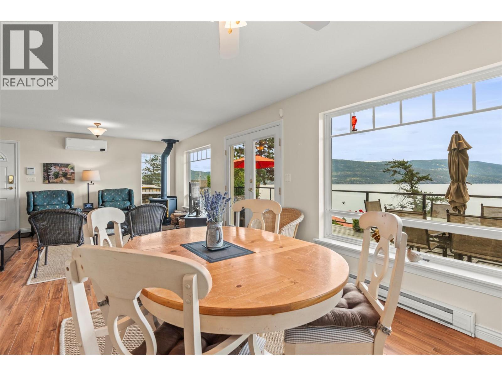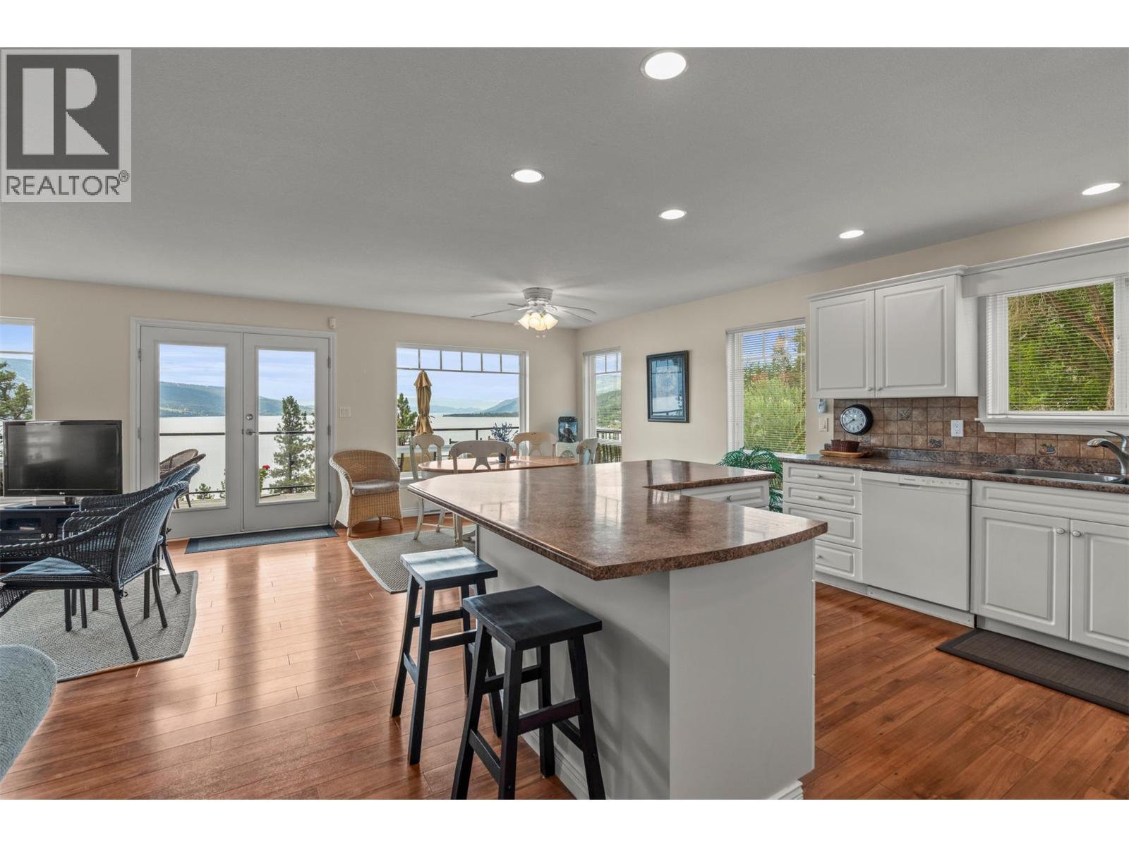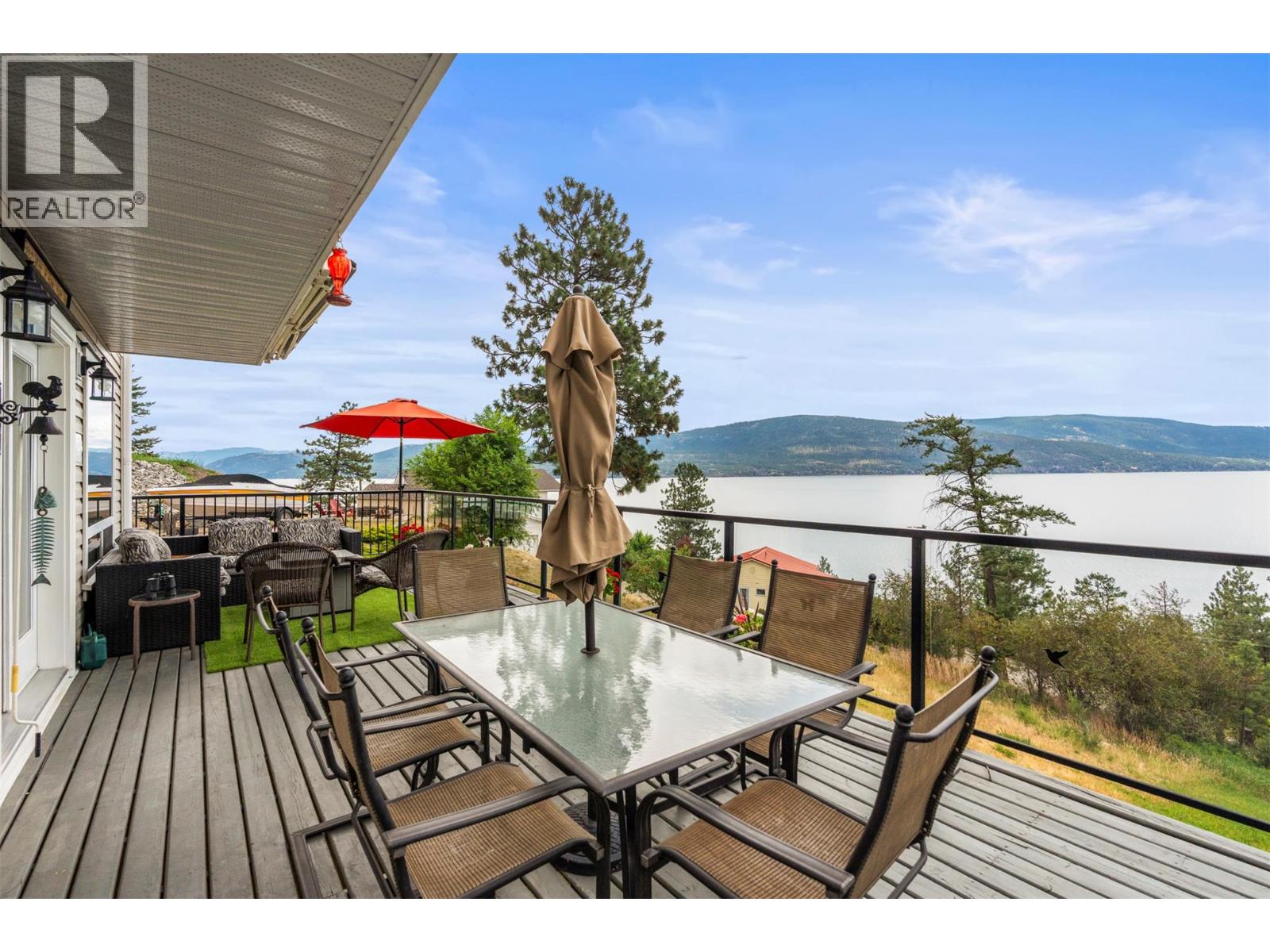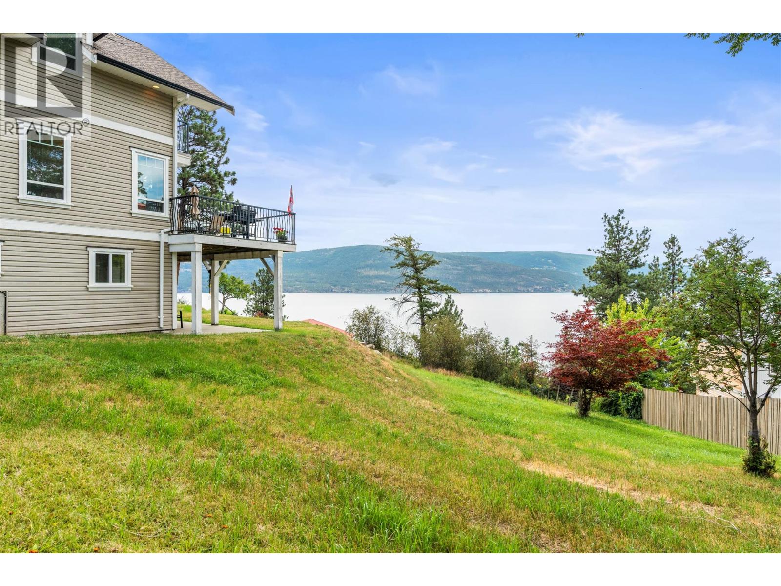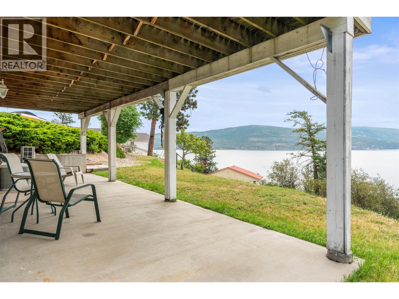 Welcome to your dream lakeview retreat! This well-maintained family home is perfectly perched to capture breathtaking expansive views of the lake from all three levels, with large south-facing windows and multiple decks to soak in the scenery. Whether you're sipping coffee on the upper balcony or enjoying a sunset by the fire pit, the views are truly unmatched. Inside, the layout is both functional and flexible. The main floor features an open-concept kitchen and dining area, seamlessly flowing into a cozy living room with a wood fireplace and walkout to a spacious deck. A full 3-piece bathroom and bedroom complete the main level. Upstairs, the oversized primary suite offers a true retreat with a sitting area, skylit 4-piece ensuite with soaker tub, and private balcony. A second bedroom with 2-piece ensuite is located across the hall. The fully finished walk-out lower level includes two additional bedrooms, a full bath, kitchen and laundry—ideal for an in-law suite or mortgage helper.Outside, enjoy ample parking including RV/boat space, a carport, mature fruit trees, a shed for garden tools, and a welcoming neighbourhood vibe. You’re just 5 minutes to the public beach and boat launch and only 10 minutes to Fintry Park. This is lake life at its best, flexible, scenic, and full of possibility. (39771792)