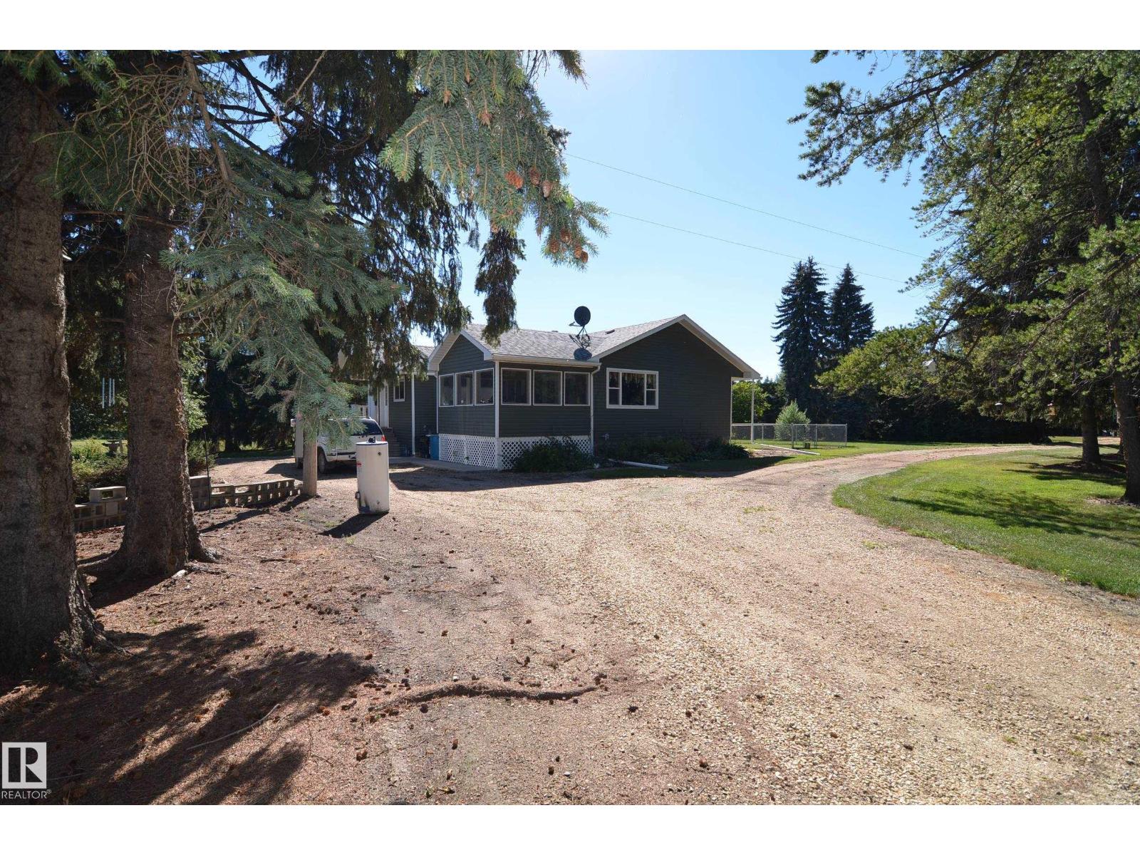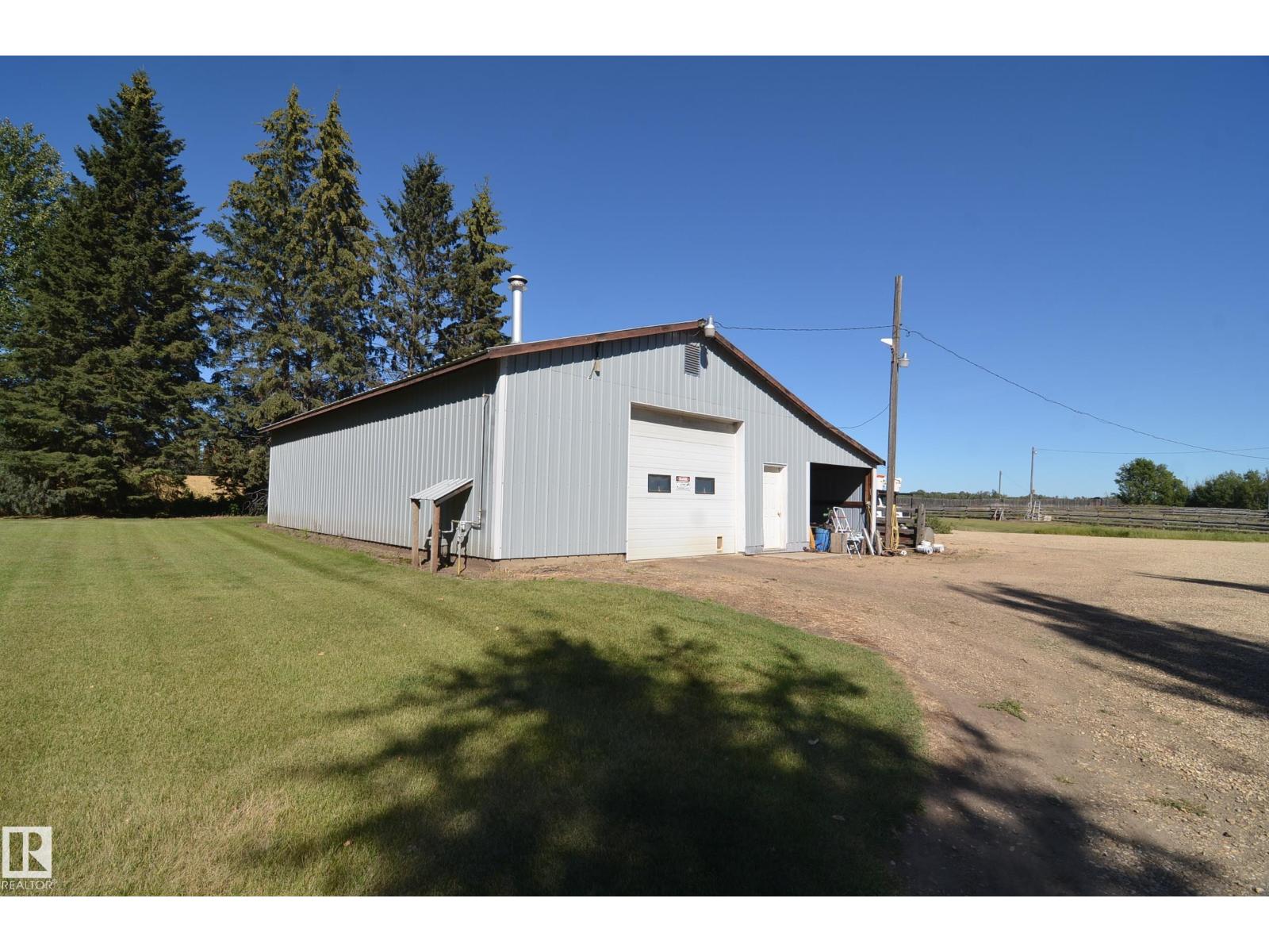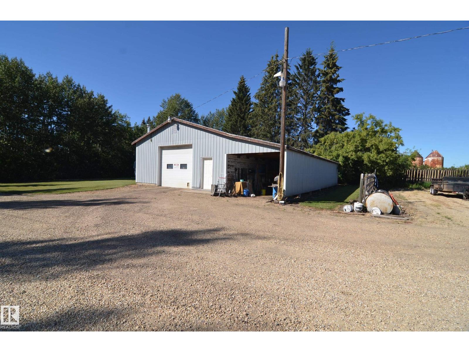Stunning 6.2 acre Property w/ solid restyled Bungalow, good Shop & fabulous maturely treed landscaping & yard space only 3 mi SE of Barrhead. Private & peaceful setting. Home features many upgrades including shingles, furnace, floors, extensive cabinetry, vinyl windows & more. 4 good sized Bdrms & 2 quality Baths including jetted tub & standing showers. Large living & family spaces both upstairs & down. Spacious dining room attaching to excellent screened in patio sitting area. Very inviting special space that accommodates all age categories. Heated Shop features 30'x50' size along w/ 12'x50' open lean too. 11' shop ceilings & 10'h OH door. Plentiful drinking water courtesy of 2 separate wells plumbed & tied together for anything you may require. Yard storage. Livestock fencing. Heavily graveled yard w/ very good parking & access for larger trucks or equipment. (33869656)