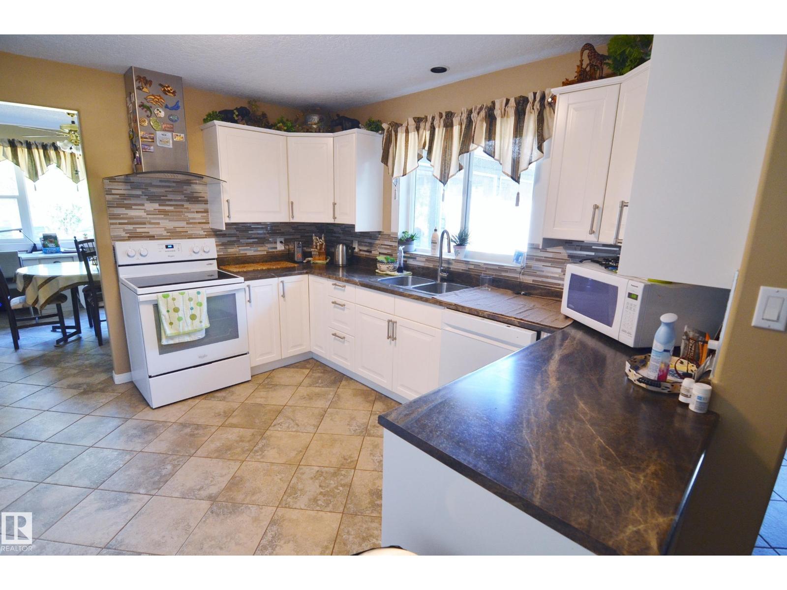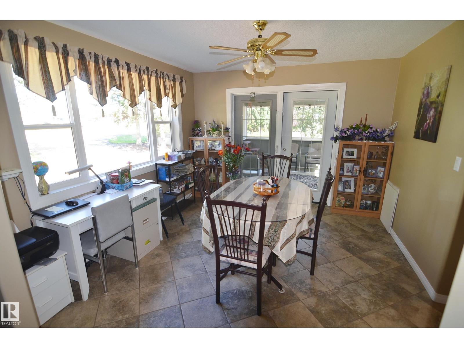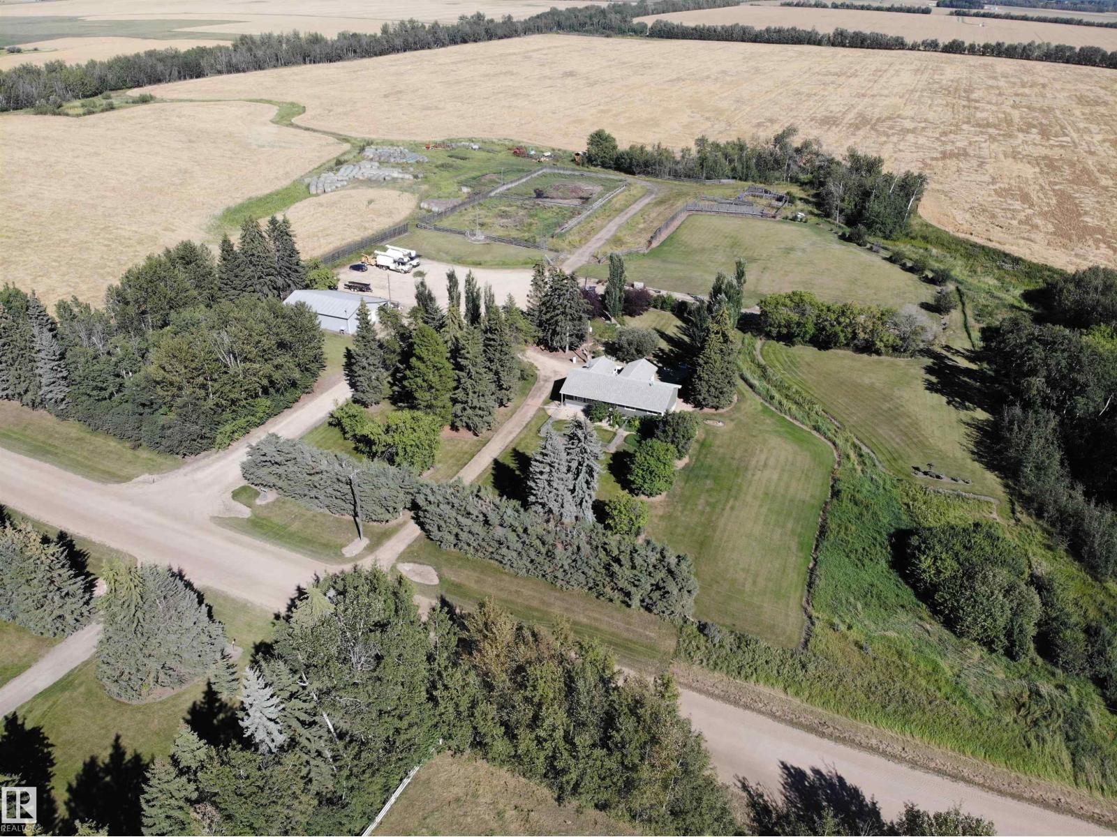 Stunning 6.2 acre Property w/ solid restyled Bungalow, good Shop & fabulous maturely treed landscaping & yard space only 3 mi SE of Barrhead. Private & peaceful setting. Home features many upgrades including shingles, furnace, floors, extensive cabinetry, vinyl windows & more. 4 good sized Bdrms & 2 quality Baths including jetted tub & standing showers. Large living & family spaces both upstairs & down. Spacious dining room attaching to excellent screened in patio sitting area. Very inviting special space that accommodates all age categories. Heated Shop features 30'x50' size along w/ 12'x50' open lean too. 11' shop ceilings & 10'h OH door. Plentiful drinking water courtesy of 2 separate wells plumbed & tied together for anything you may require. Yard storage. Livestock fencing. Heavily graveled yard w/ very good parking & access for larger trucks or equipment. (33869656)